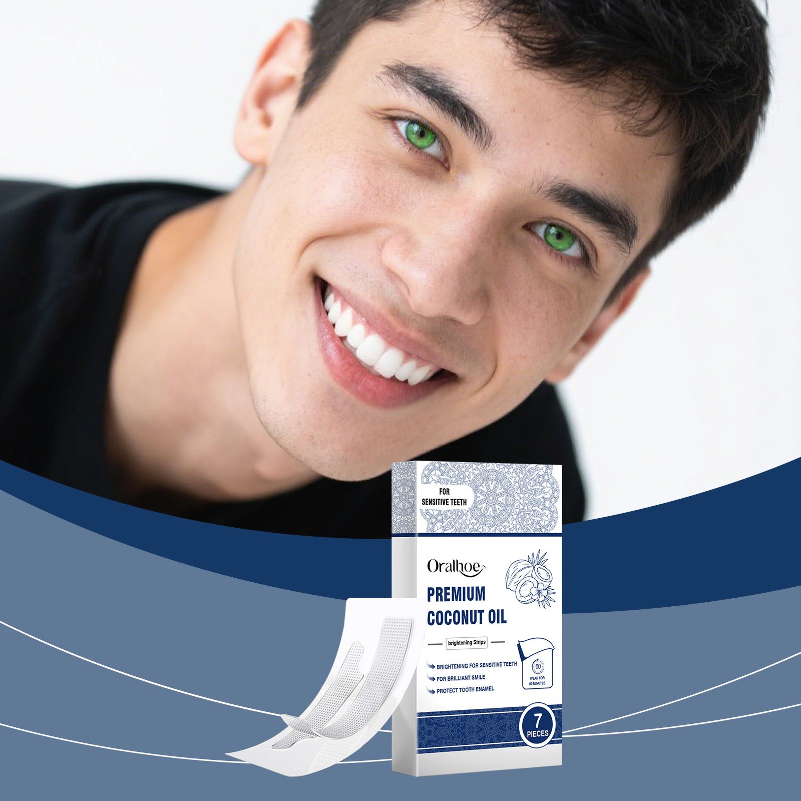 我们的牙齿护理牙贴,由甘油、丙二醇精心调配而成。专为有助于快速亮白牙齿,安全去除牙齿表面和表面下方的污渍设计。使用方法极为便捷:漱口后,将产品的凝胶面放在牙龈和牙齿上,轻轻按压,确保产品完全粘附在表面上,等待60分钟后再揭下即可。并且它能够能够长效保持,持久亮白效果,维持口腔清新健康,均匀覆盖,贴合牙齿表面,均匀美白每一颗牙齿。