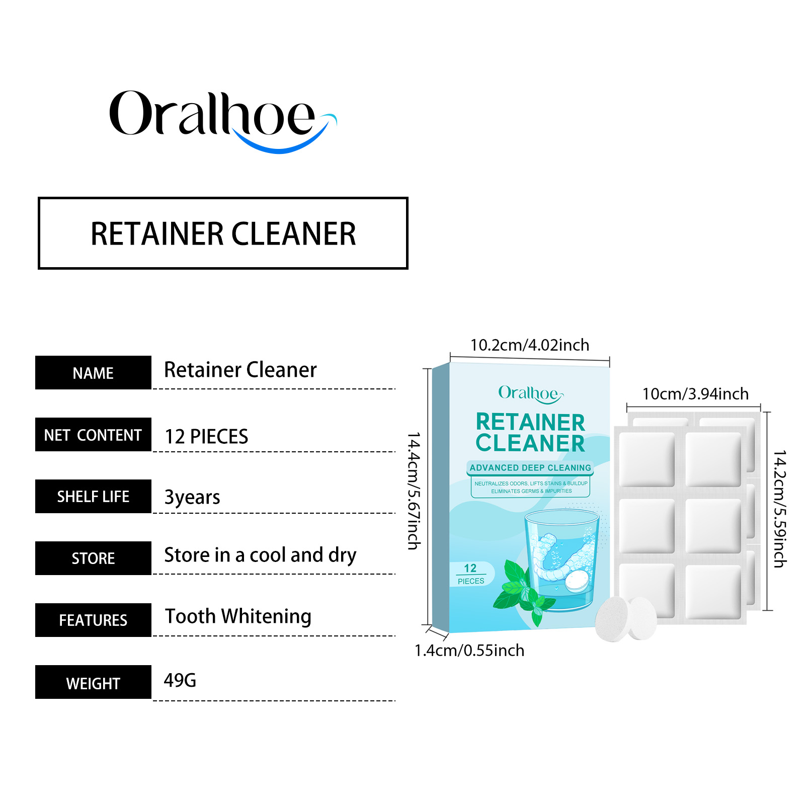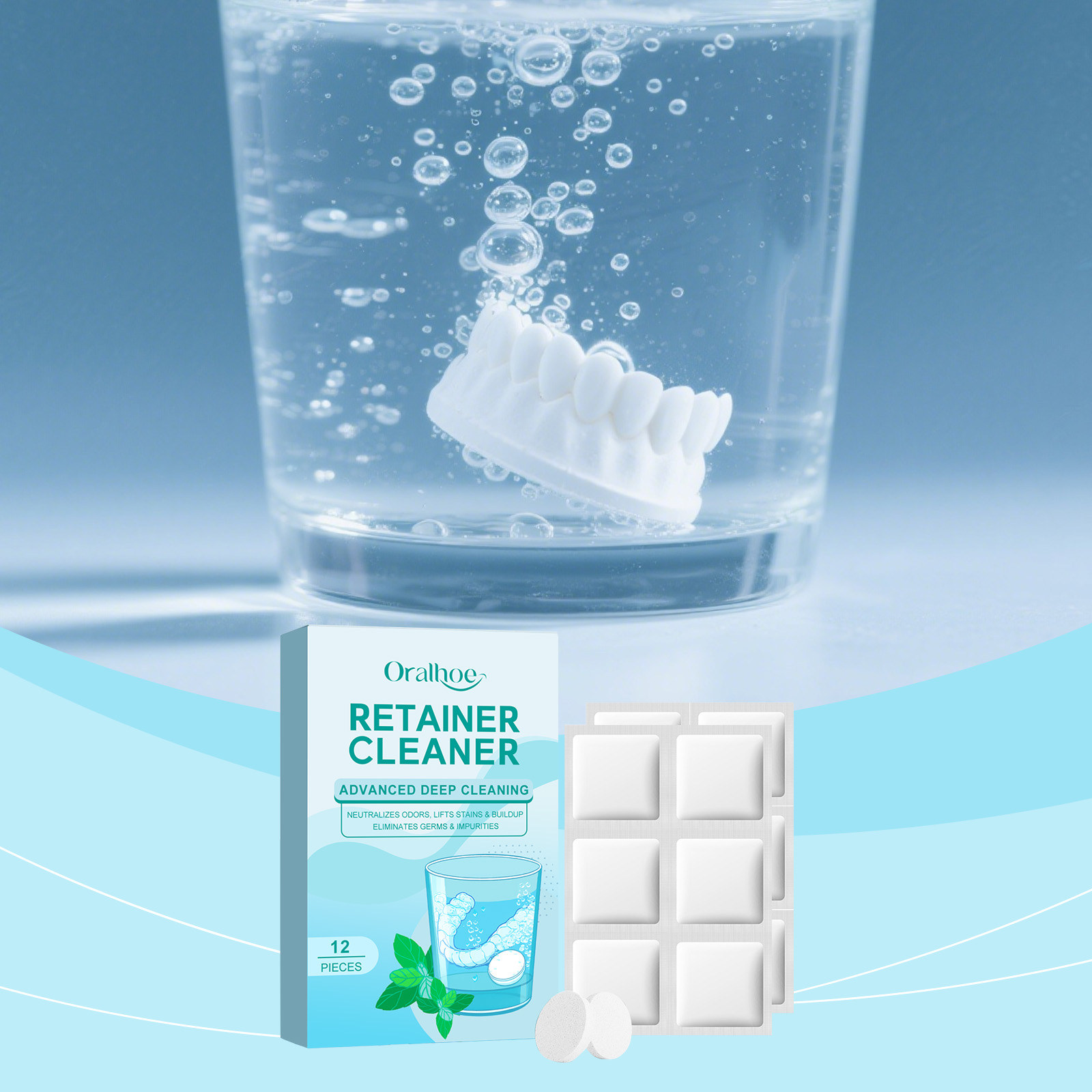 Oralhoe Denture Cleaning Effervescent Tablets: Gently Clean Dentures, Keep Them Clean And Fresh. Portable Daily Effervescent Tablets