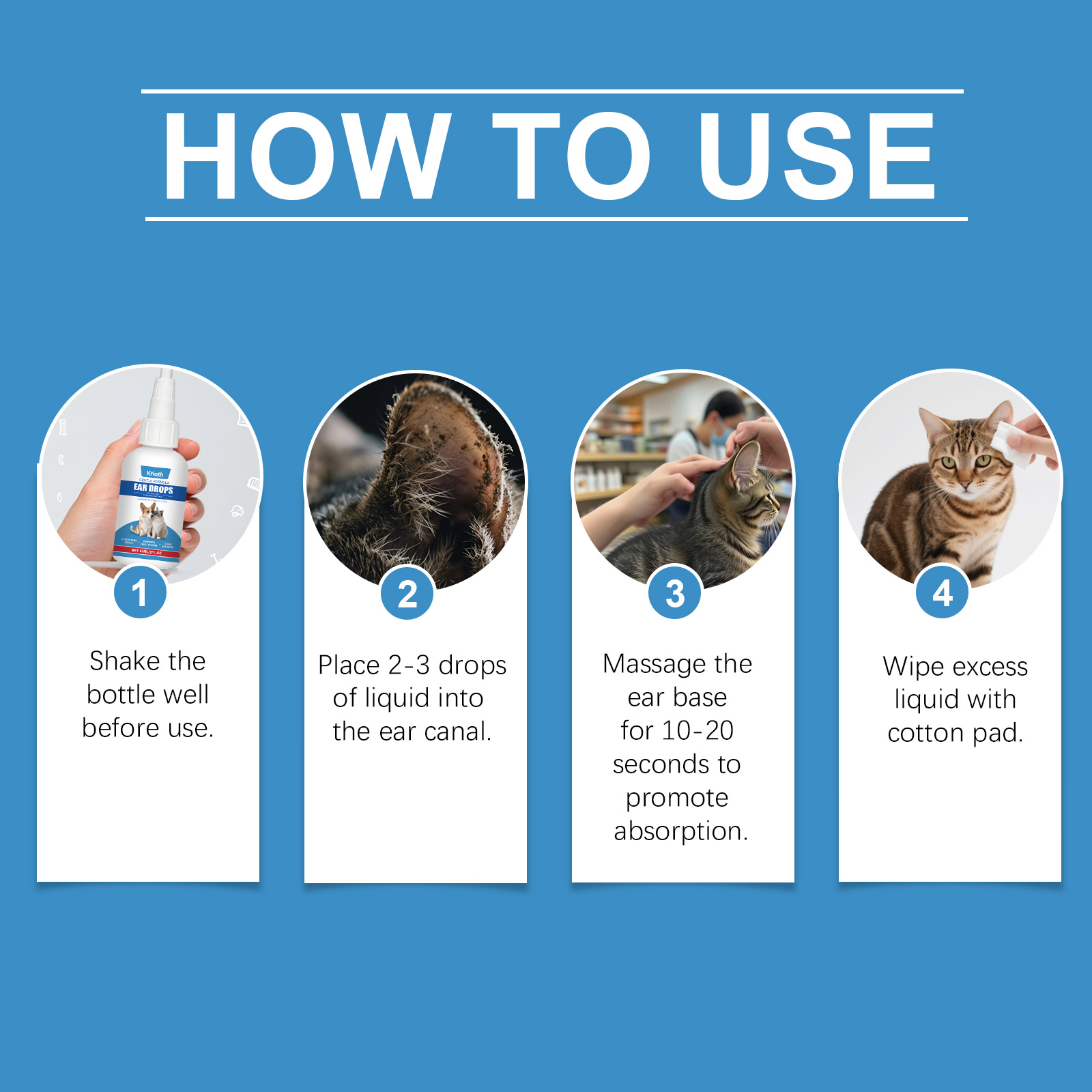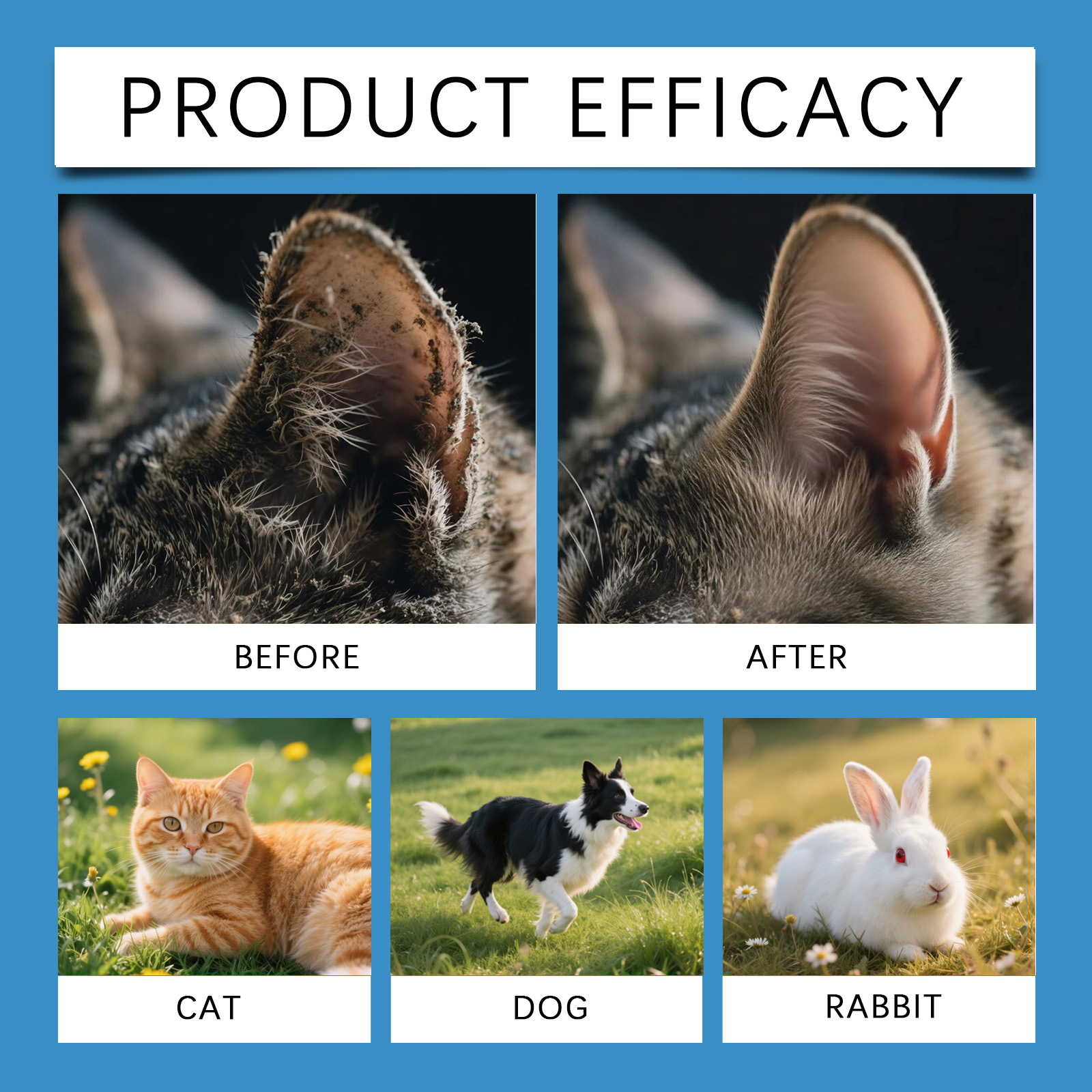 我们的宠物护理滴耳剂,由甘草酸二钾、洋甘菊提取物精心调配而成。专为清洁猫狗的耳螨并保护宠物耳朵设计。使用方法极为便捷:使用前充分摇匀瓶子。将2-3滴液体放入耳道。按摩耳根部10-20秒以促进吸收。用棉垫擦去多余的液体。并且可以调节耳道的酸碱平衡,以减少异味。