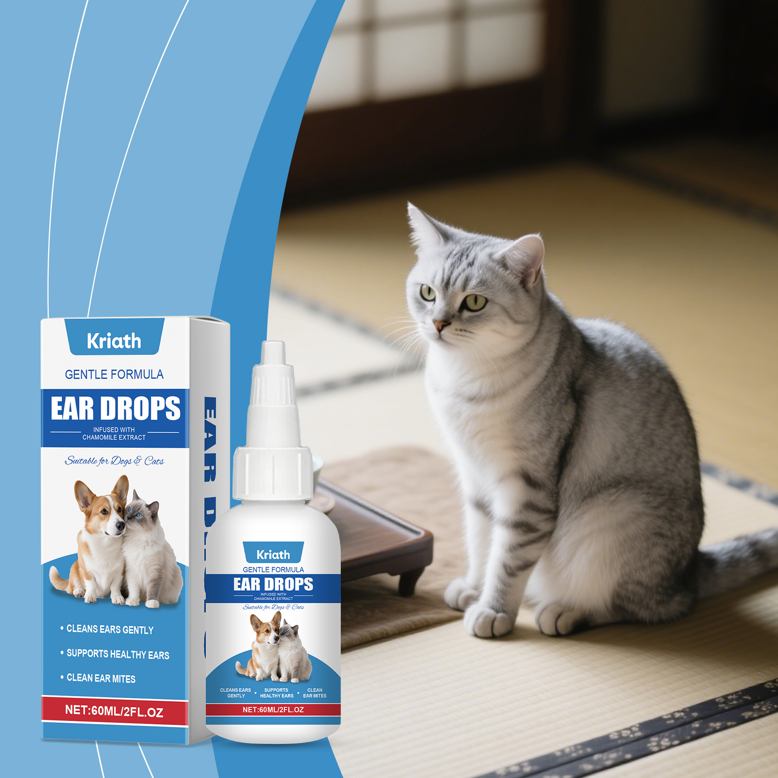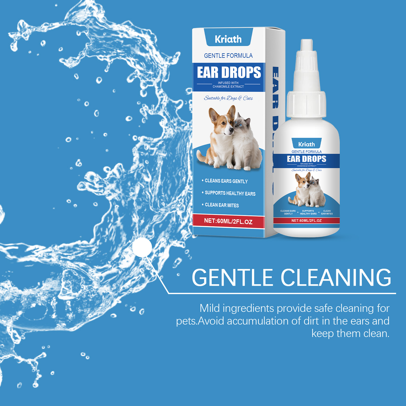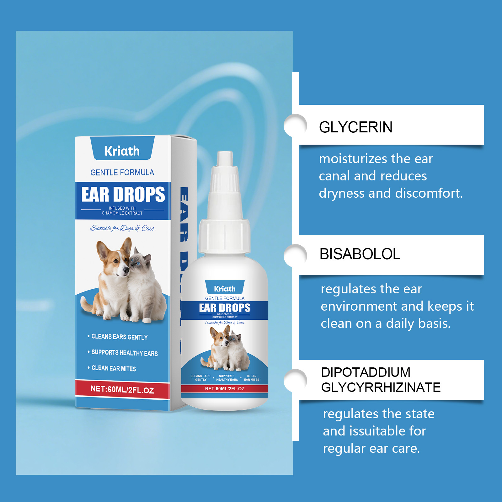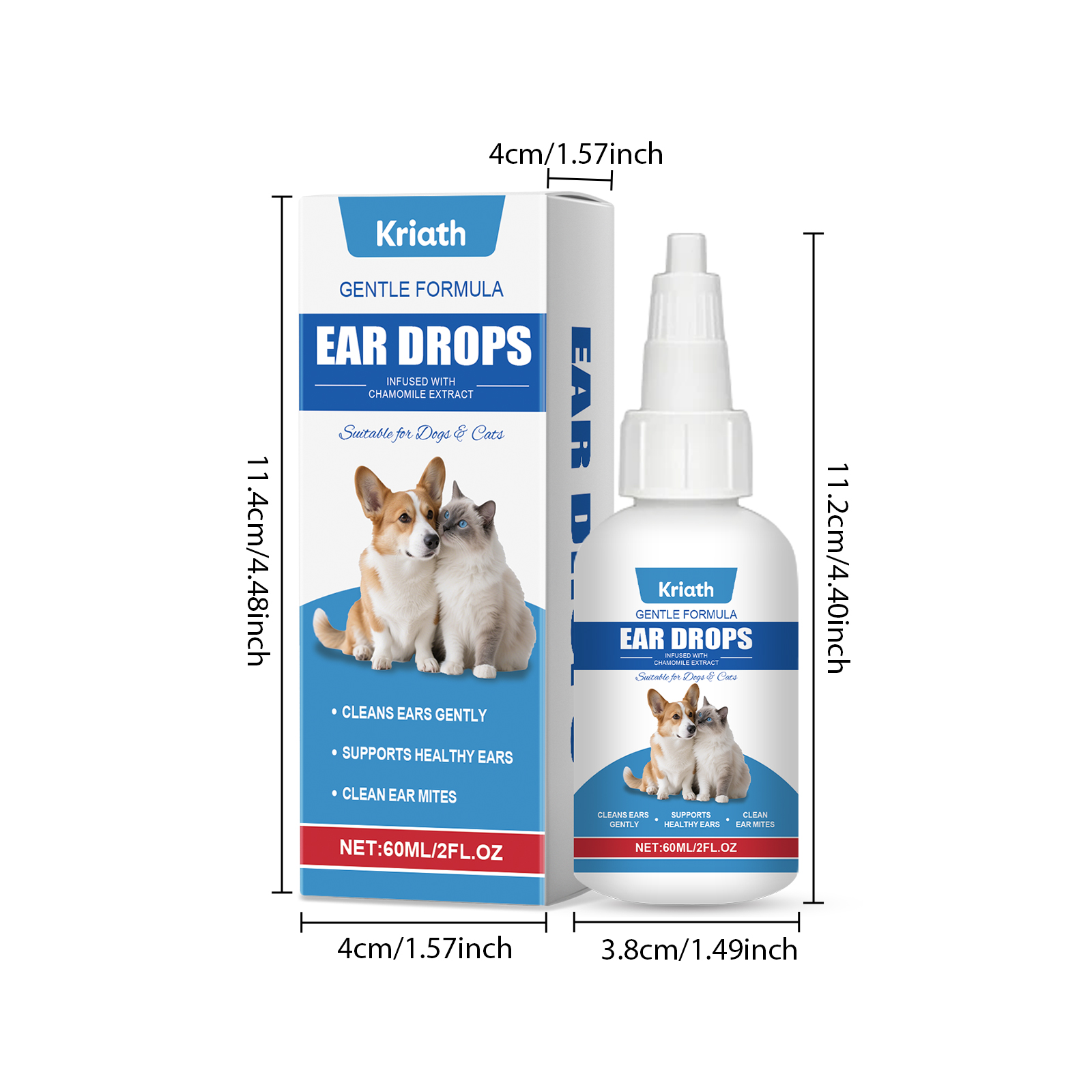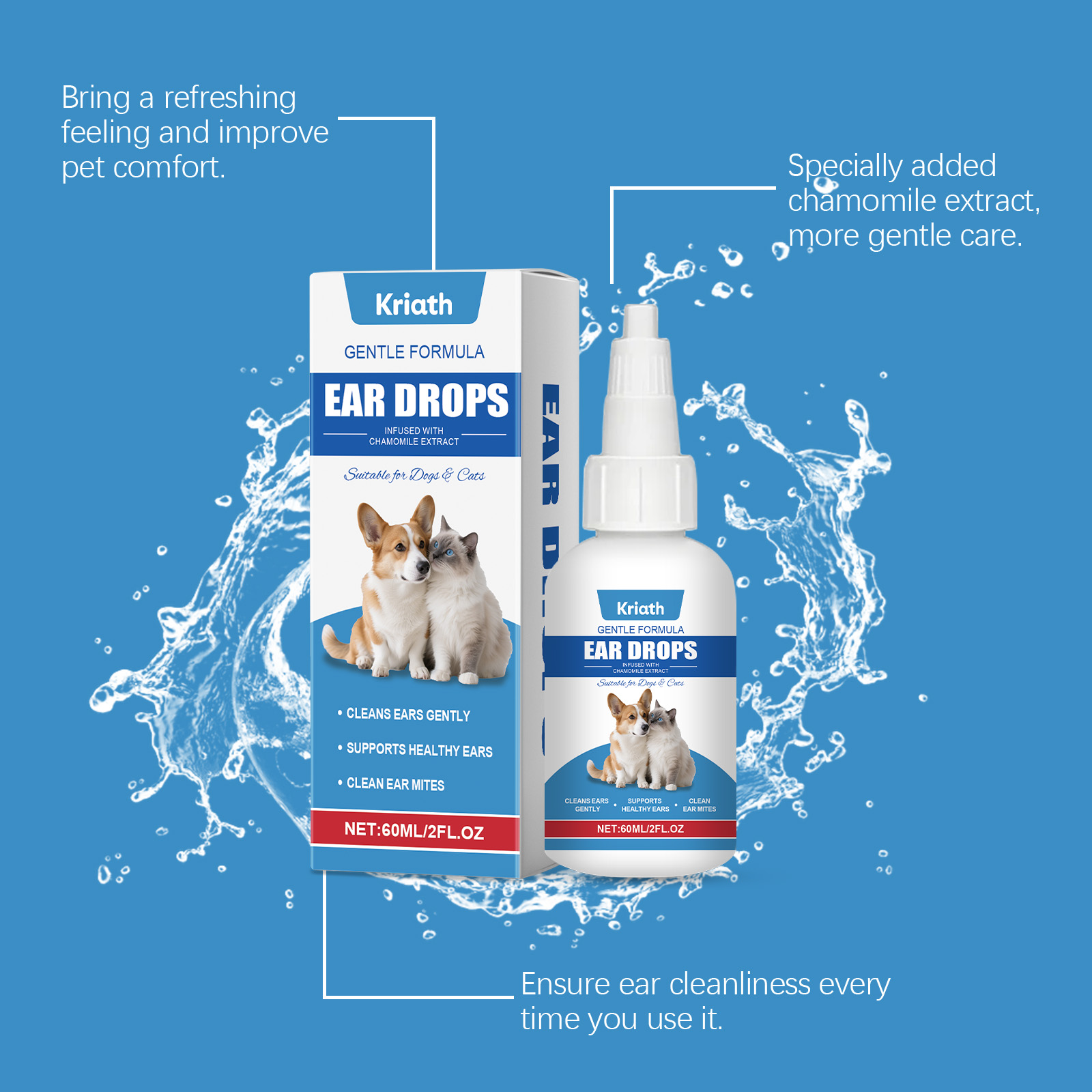 Kriath Pet Care Ear Drops, Universal For Cats And Dogs, Daily Care For Pet Ears, Cleaning And Deodorizing Ear Drops