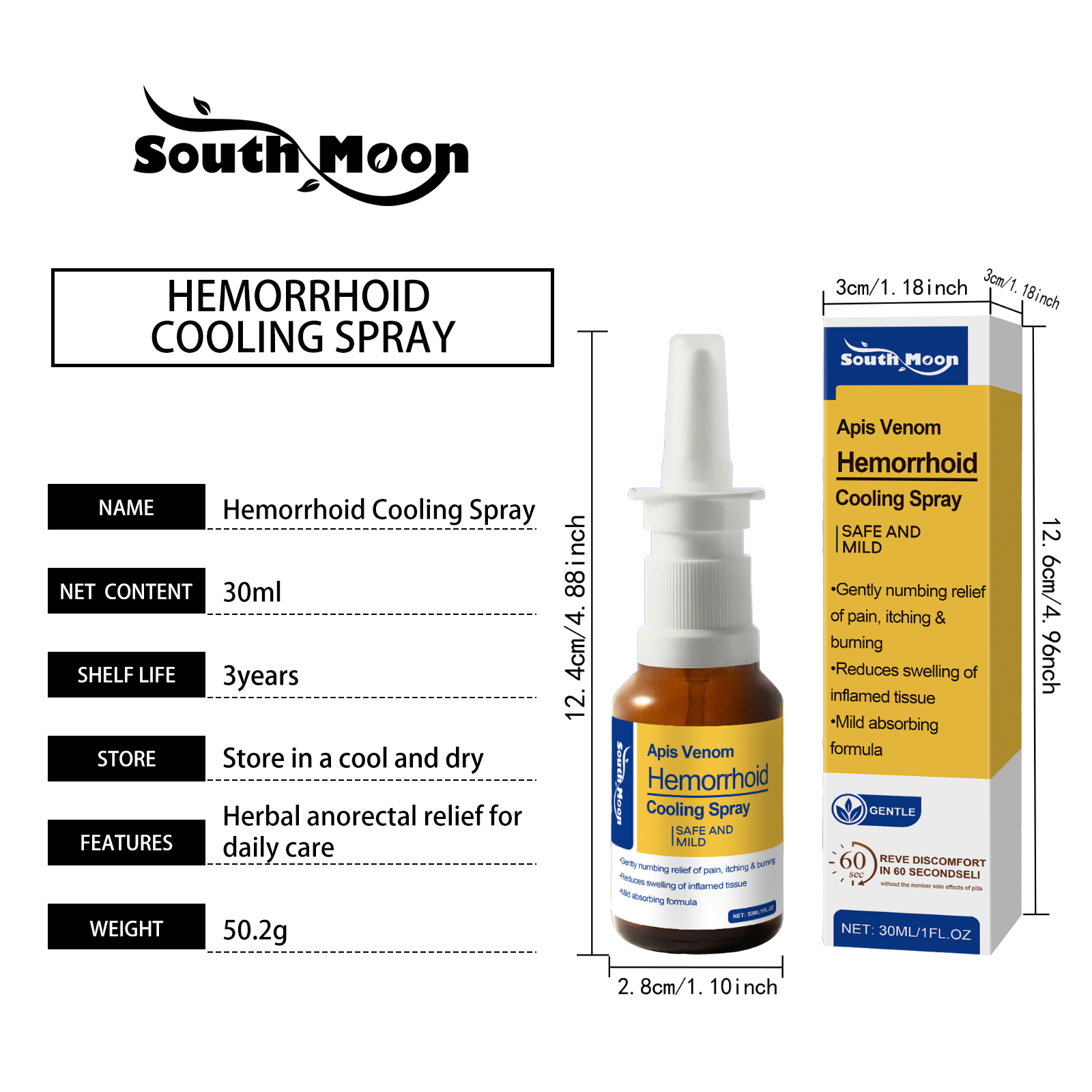 South Moon Bee Venom Perianal Spray, With A Gentle Formula, Is Skin-Friendly, Moisturizing, Nourishing And Refreshing For Perianal Care