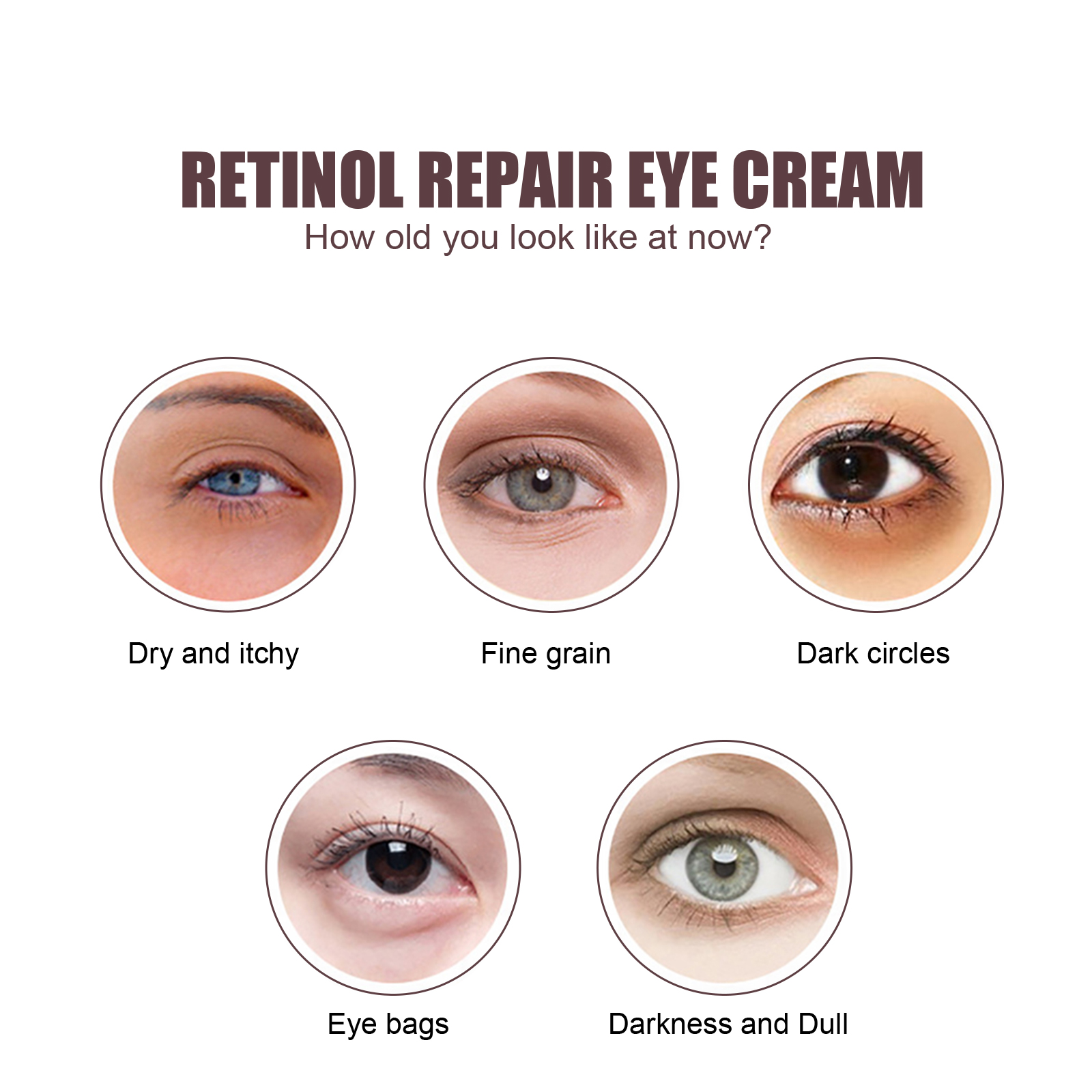 Hoygi Retinol Repair Eye Cream, Reduce Wrinkles Fine Lines Bags Dark Circles Brightening Skin Anti-Wrinkle Repair Eye Cream