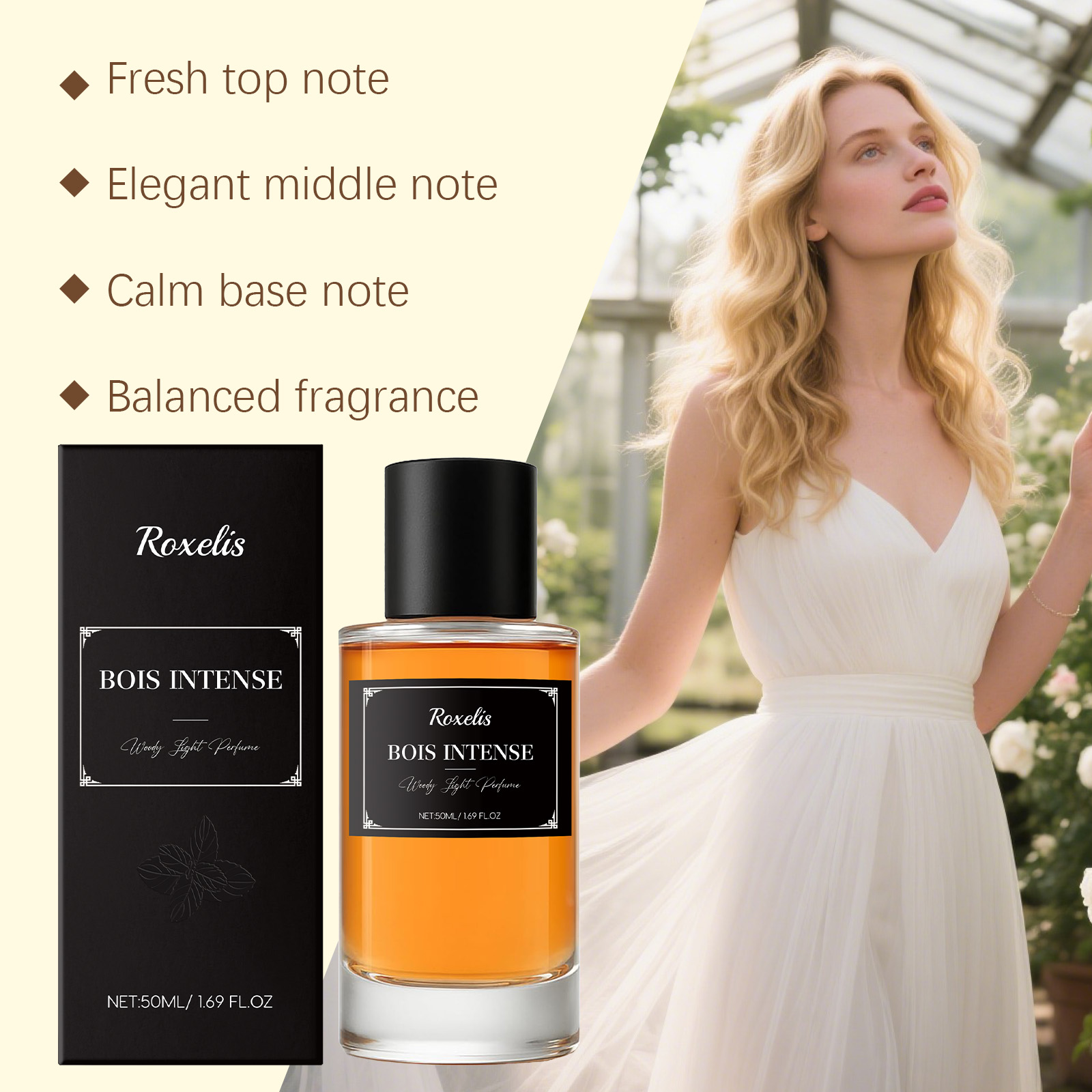 Roxelis The Woody Mint Eau De Toilette Is Fresh And Elegant, With A Woody Floral Scent That Showcases One's Charm And Multi-Layered Personality