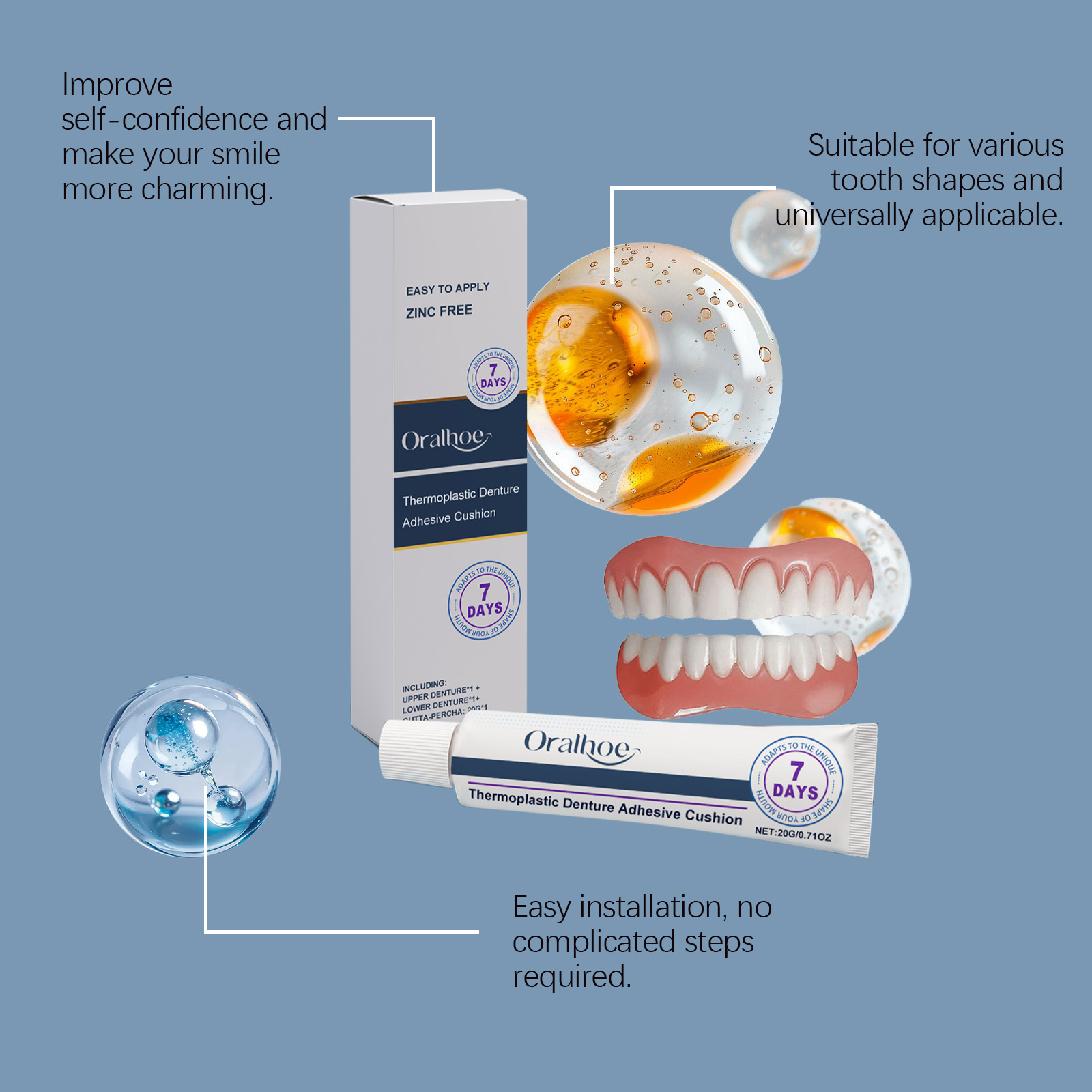 Oralhoe Denture Decoration Set, Gentle And Comfortable Material, Natural Smile, Beauty, Daily Denture Set