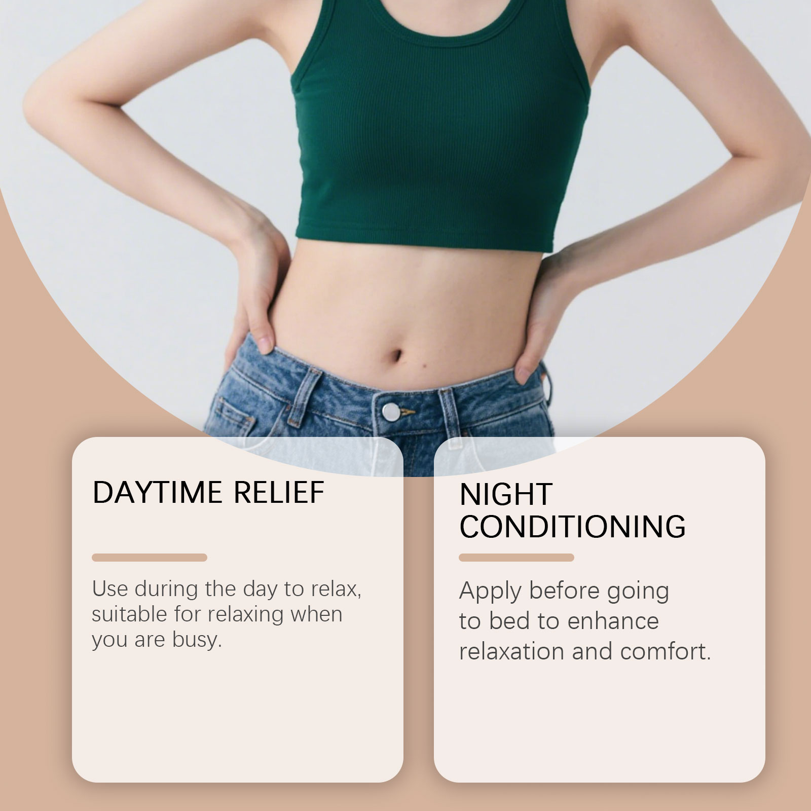我们的身体护理贴片,由甘油、羟乙基纤维素精心调配而成。专为减少疲劳,放松肌肉,调节睡眠,保护肝脏设计。使用方法极为便捷:清洁腹部肌肤并保持干燥,将本品贴在腹部肌肤上,轻轻按压确保其粘合,静置6-8小时后取下即可。并且它调节消化系统,维持身体机能。