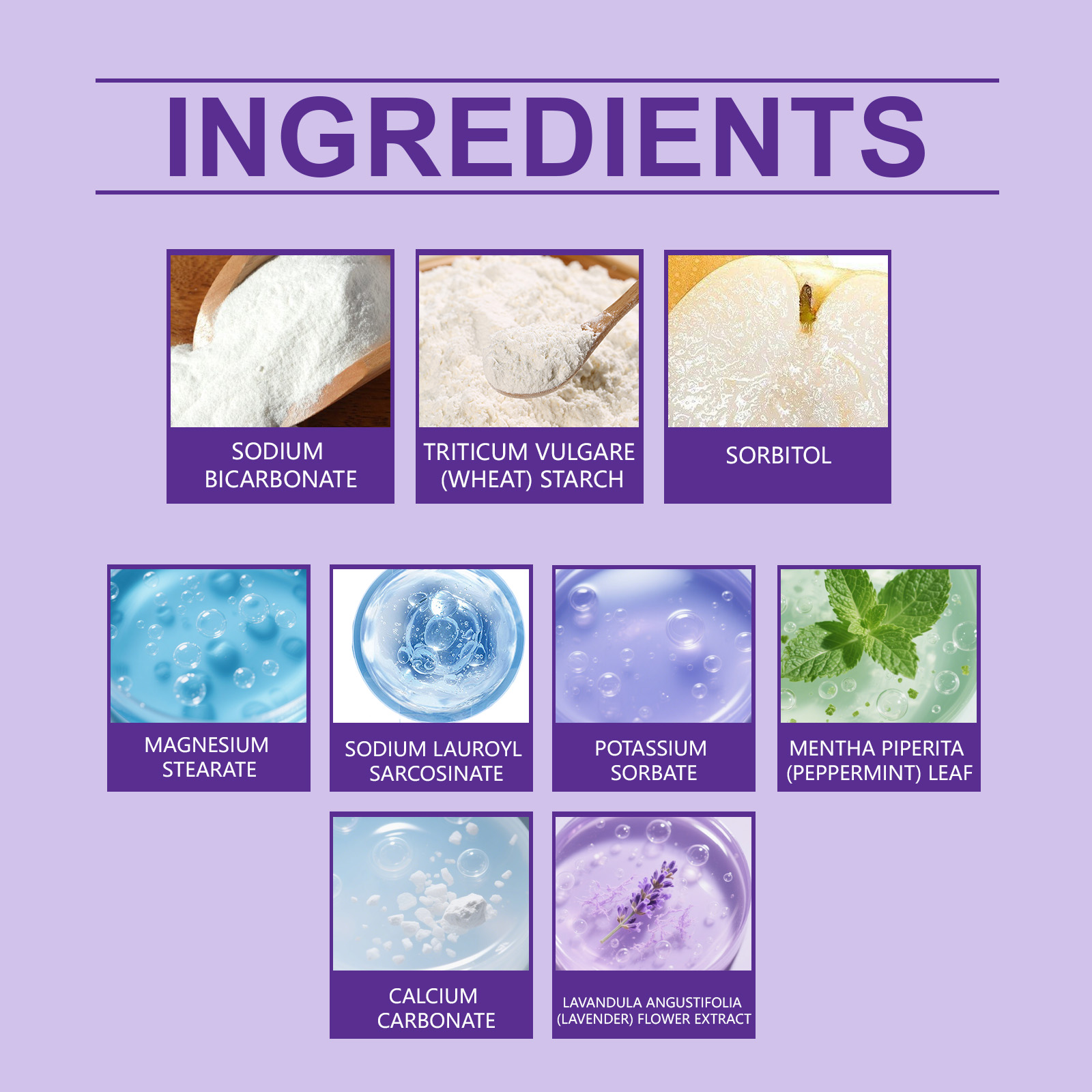 我们的紫色清洁牙粉,由碳酸氢钠、玉米淀粉、山梨(糖)醇精心调配而成。专为有效去除牙齿表面污渍,令您的牙齿更显亮白,展现自信笑容设计。使用方法极为便捷:1.先用清水漱口,湿润牙齿。2.取适量牙粉放在湿润的牙刷上,刷牙2-3分钟。3.再用清水漱口至干净即可。并且它可以有助于修复牙釉质,增强牙齿抵抗力,帮助您维持牙齿健康状态,适合日常使用,有效清新口气,持久清爽呵护您的口腔,消除异味,带来清爽舒适的口腔感受。