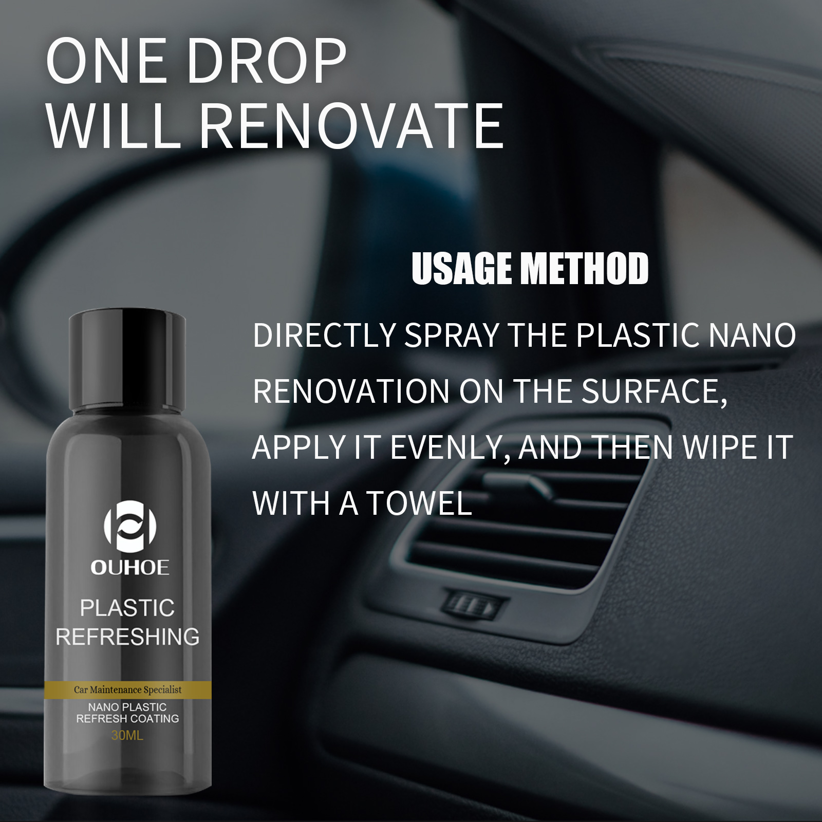OUHOE Dashboard Refurbisher (50ml) Polishing Plastic Whitening Maintenance Repair Interior Dust-Proof Cleaner