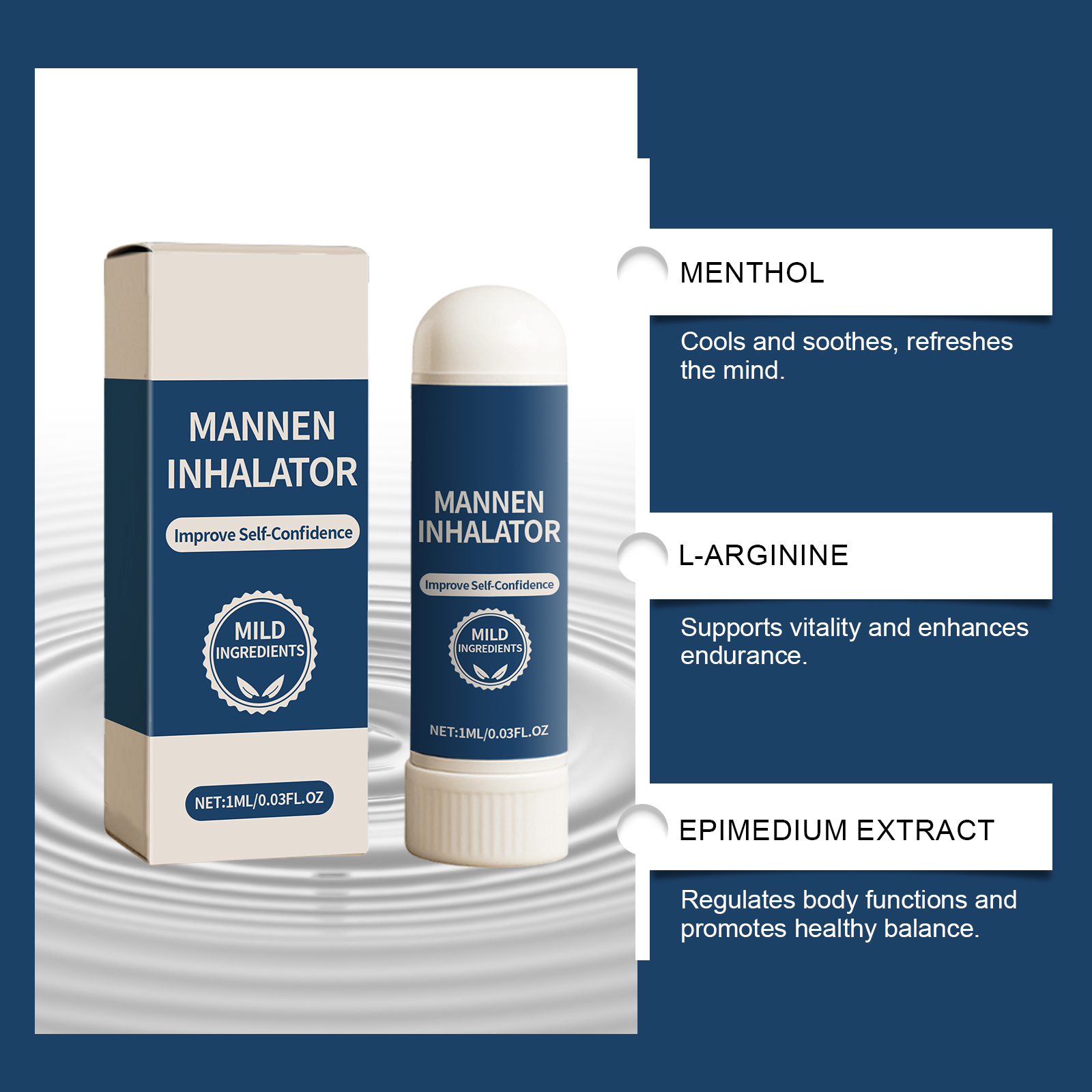 我们的男士鼻吸棒,由薄荷脑、淫羊藿提取物精心调配而成。专为提高身体耐力,增强运动表现,调节睾酮,唤醒男性内在活力能量设计。使用方法极为便捷:打开盖子,将本品置于鼻孔下方,轻轻吸气15分钟。并且它可以增强肾脏功能,助力勃起性能并提高身体活力。