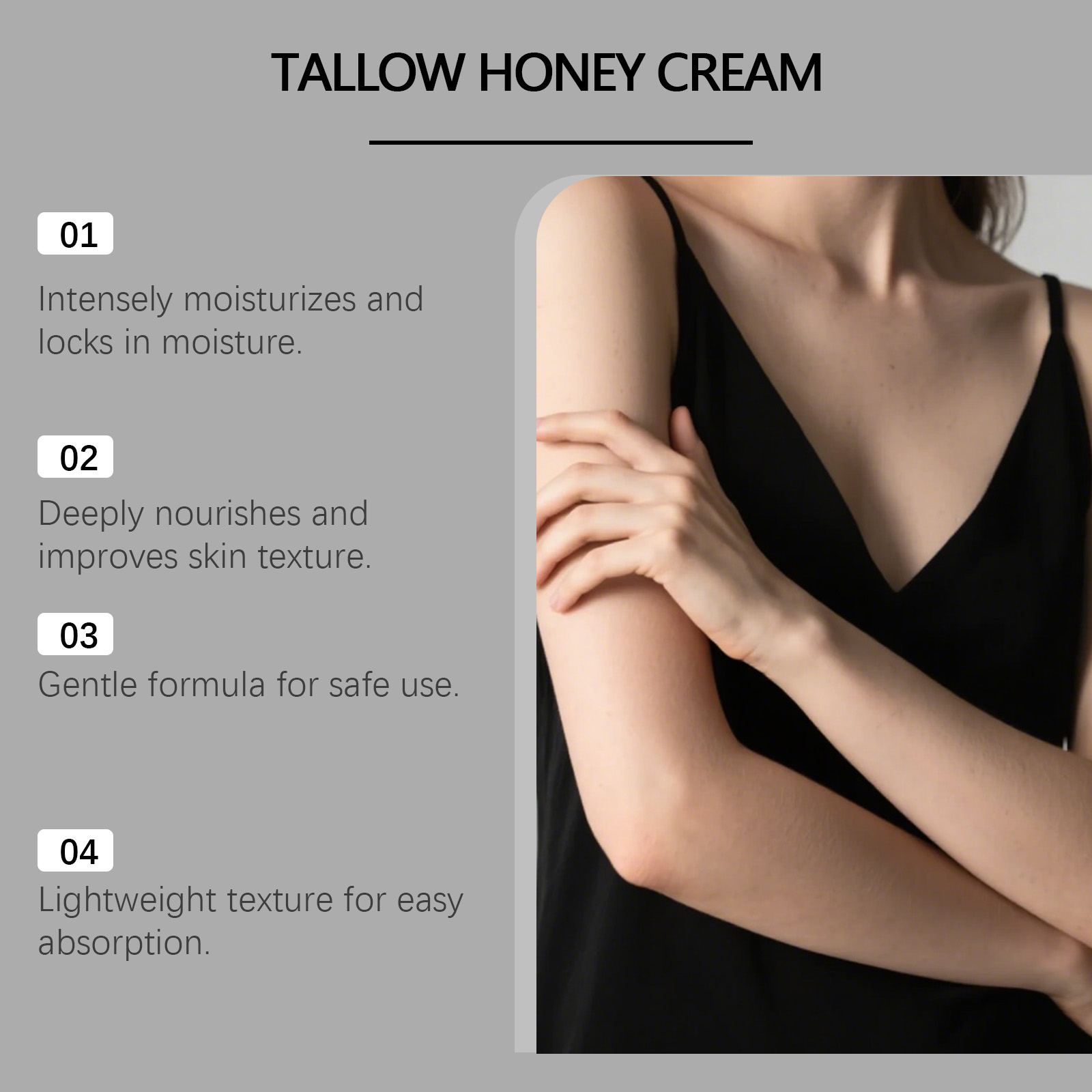 我们的牛脂护理润肤霜,由甘油、矿油、甘油硬脂酸酯精心调配而成。专为提供深层滋养与保湿,帮助肌肤长时间保持水润,有助于减轻细纹的出现,改善肌肤状态设计。使用方法极为便捷:1.清洁面部和身体肌肤并保持干燥。2.取适量本品均匀涂抹在面部、身体肌肤上。3.轻轻按摩使其完全吸收即可。并且它可以支持整体肌肤健康,令肌肤更光滑、状态更均衡,舒缓肌肤,带来舒适清新的感受。