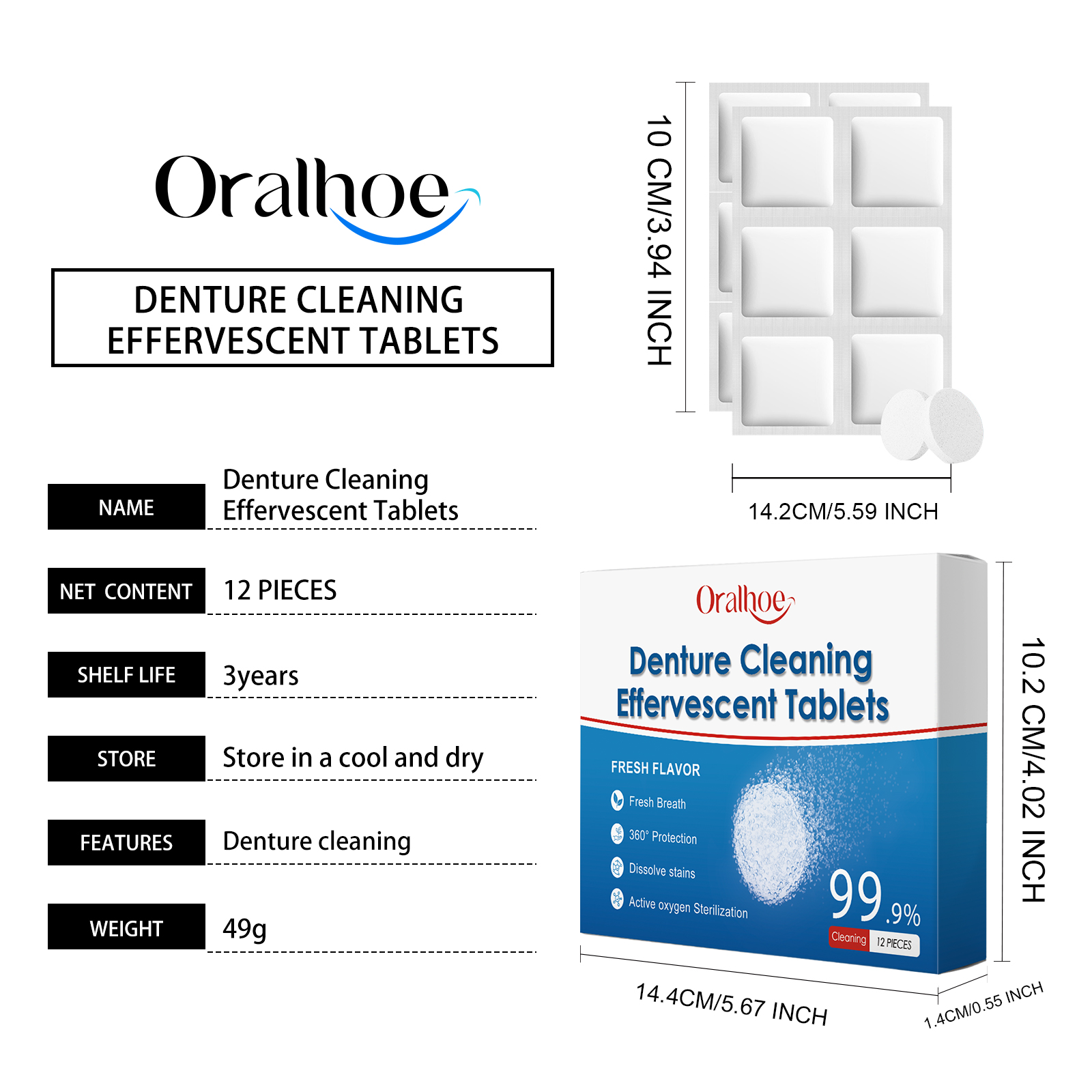Oralhoe Denture Cleaning Effervescent Tablets Daily Cleaning Denture Dirt And Stain Care Effervescent Tablets