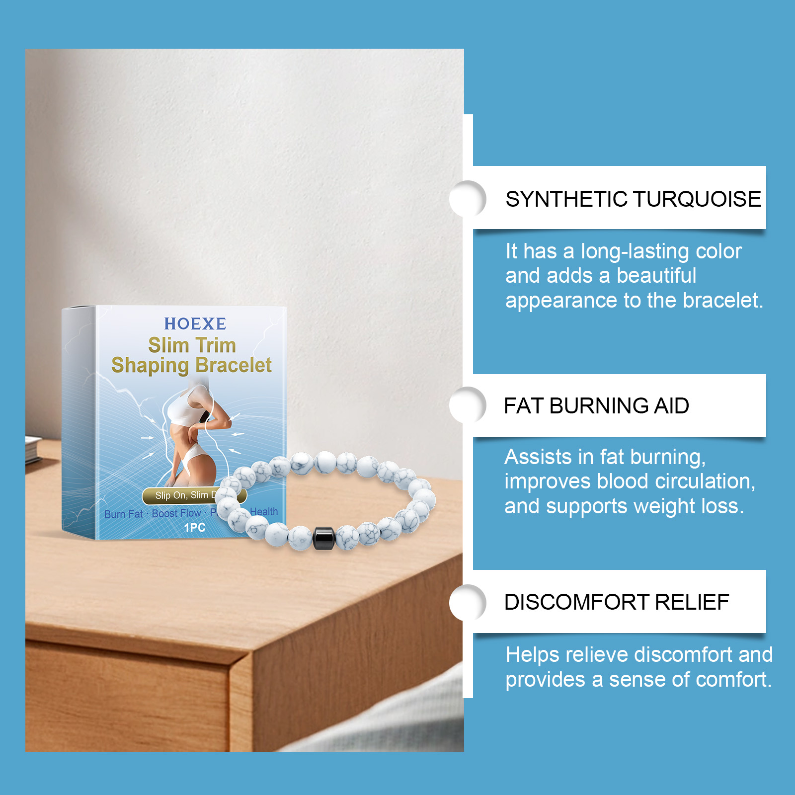 我们的女士串珠手环,由合成松石精心调配而成。专为帮助脂肪代谢,改善血液循环设计。使用方法极为便捷:将手链戴在手上每天佩戴,以充分利用它。定期清洁手链,去除杂质和汗水。并且有助于改善睡眠质量并保持健康的心态。