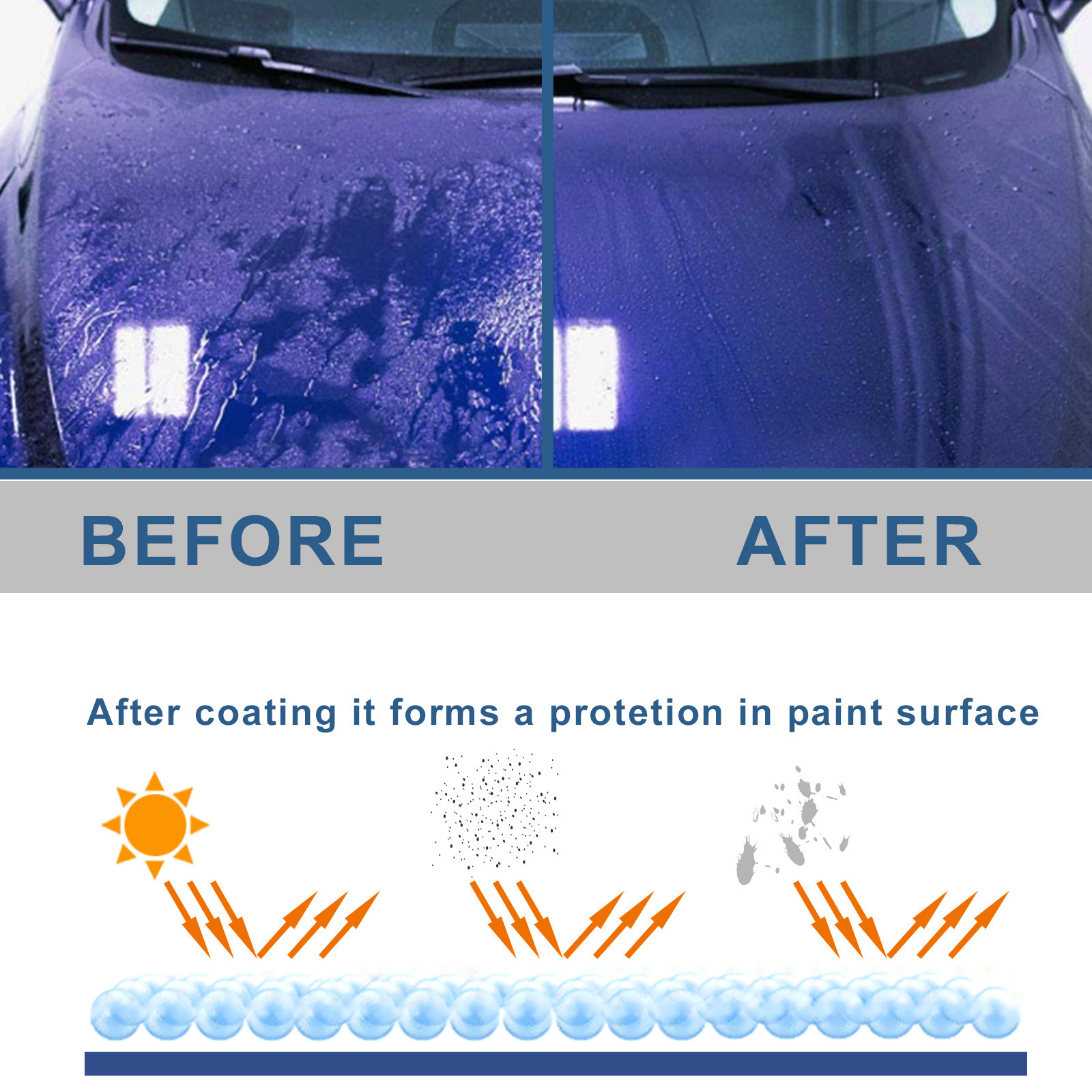 我们的汽车纳米镀膜喷雾含有巴西棕榈蜡,天然表面活性剂、去离子水。它可以涂覆后在油漆表面形成保护层。它的使用方法很简单:清洁和干燥汽车,将涂布剂摇匀后喷于油凌表面,用毛巾均匀擦至漆面光亮。并且可以镀晶蜡封釉,养护车漆。
