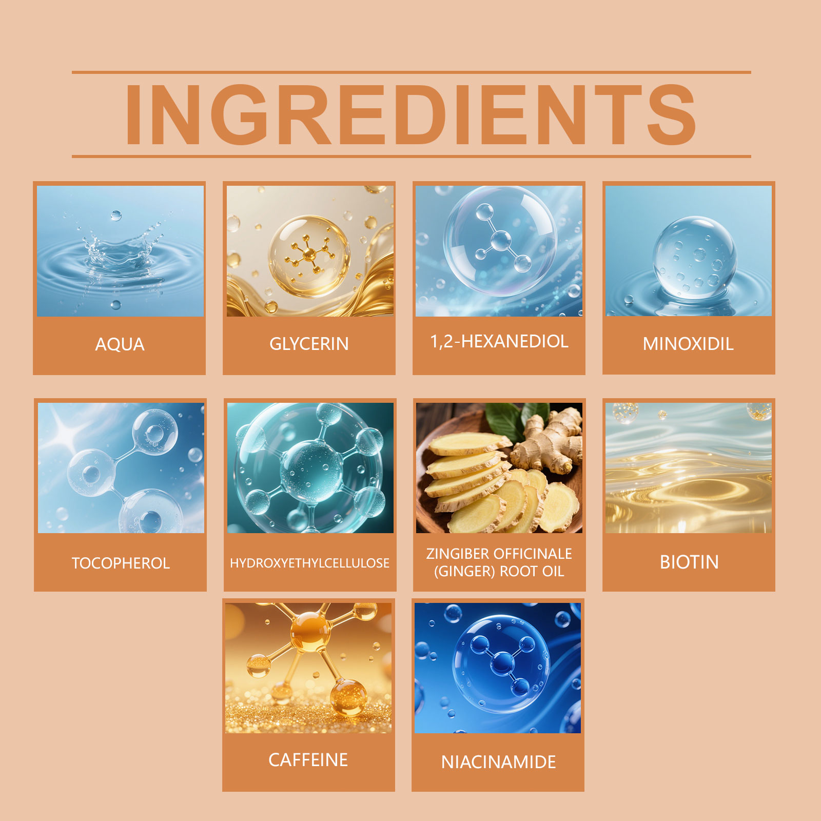 我们的滋养护发精华液,由咖啡因、烟酰胺精心调配而成。专为刺激毛囊活动,促进新发生长设计。使用方法极为便捷:彻底清洁头皮和头发,并将它们彻底干燥,将适量的本产品均匀涂抹在头皮上,轻轻按摩,以达到最佳吸收。并且可以强化发根,减少脱发,增强头发韧性,并防止头发断裂和脱落。