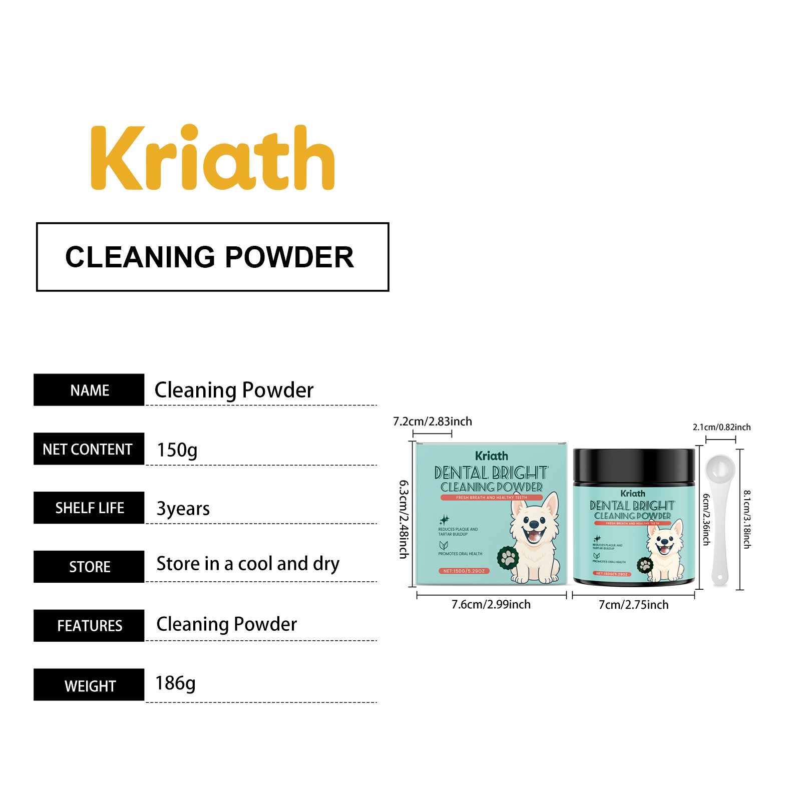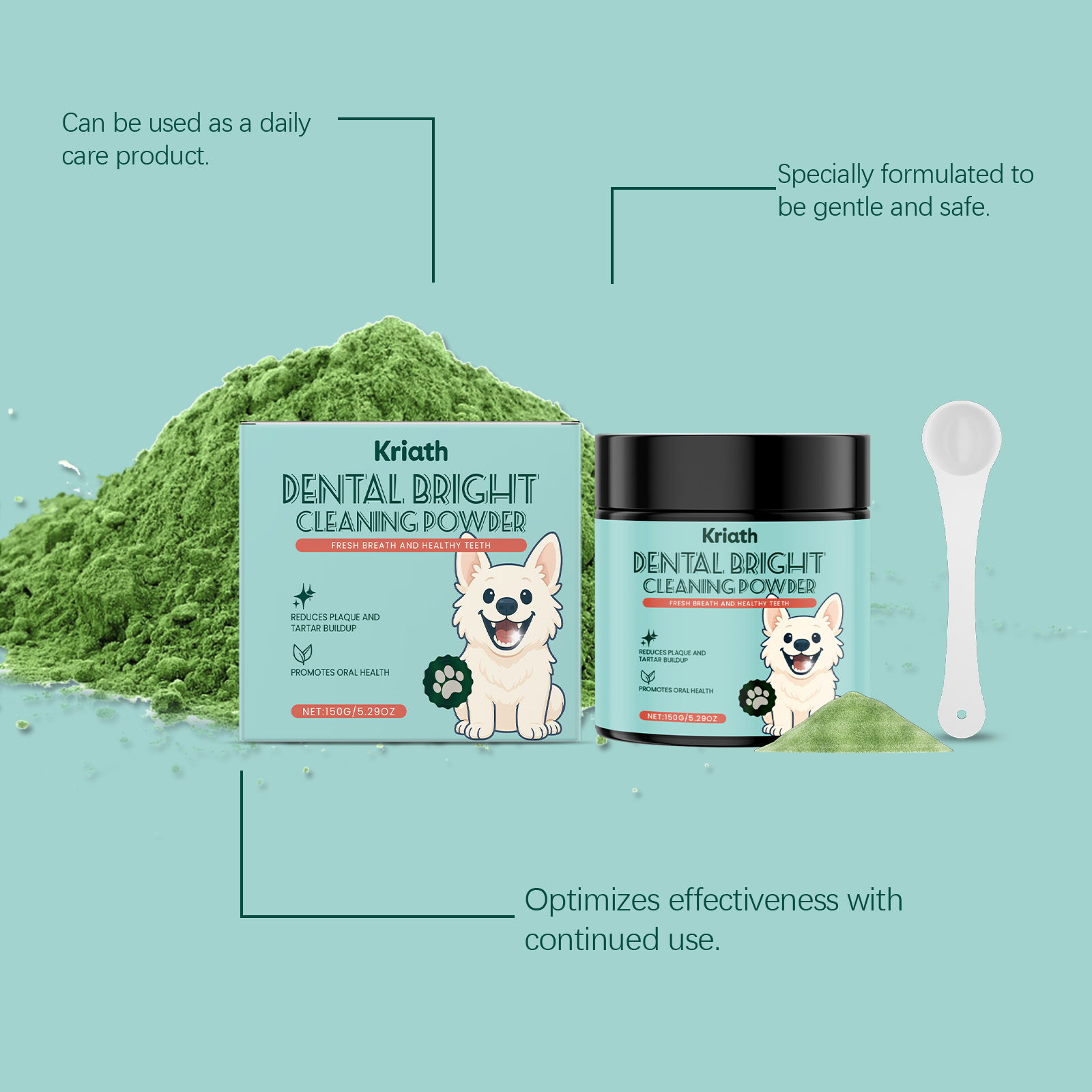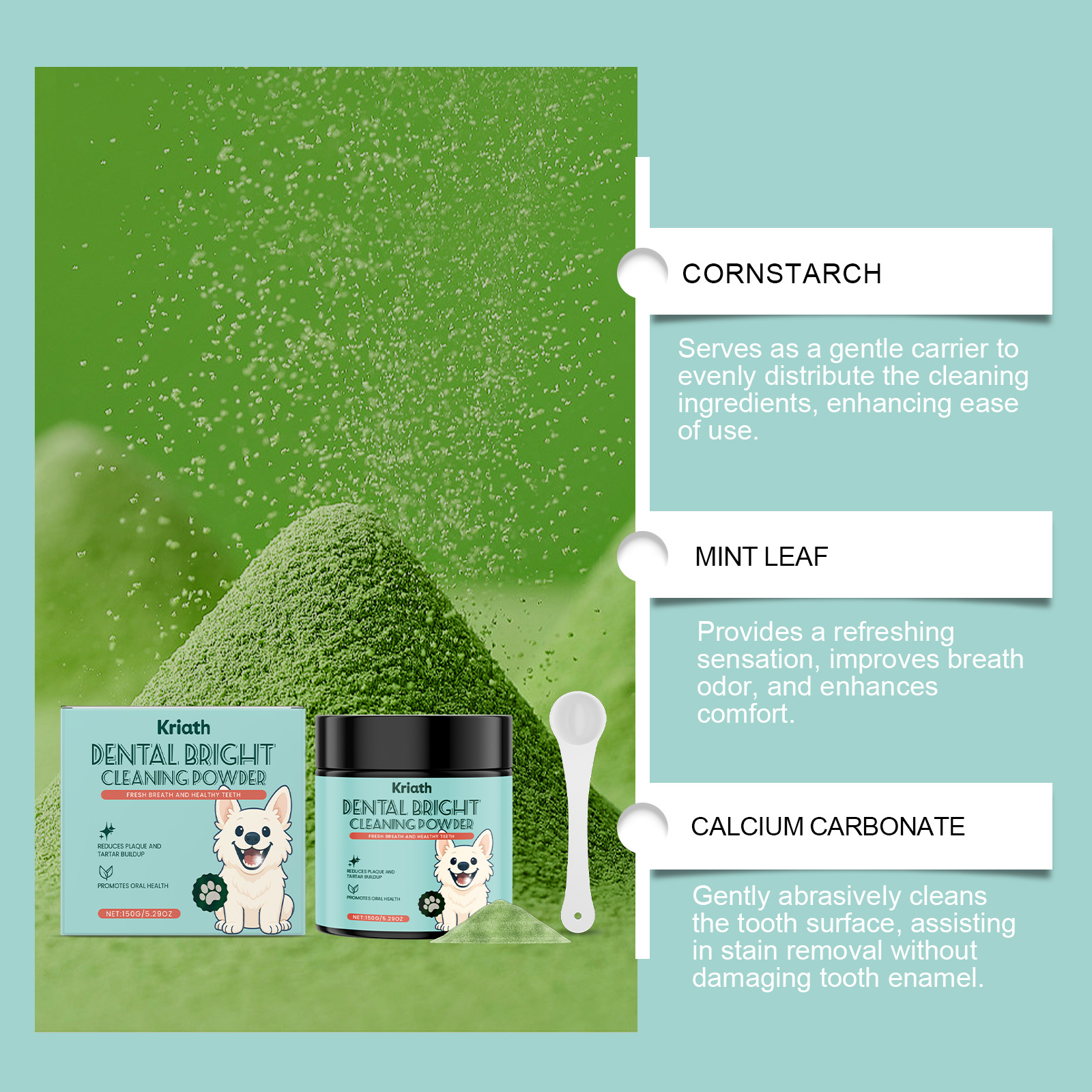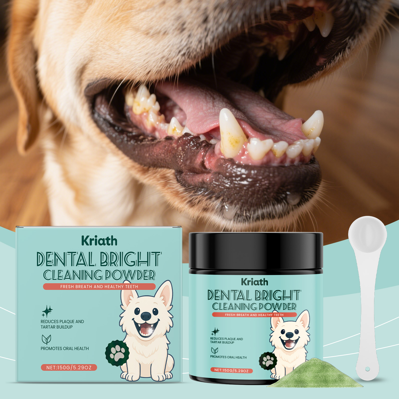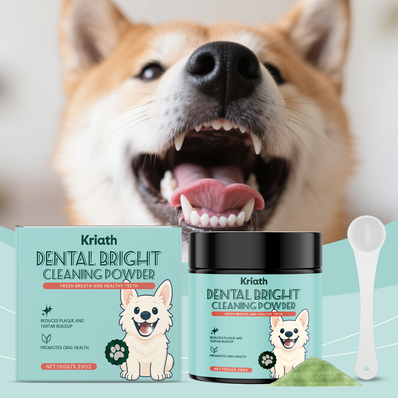 Kriath Dog Teeth Cleaning Powder With A Mild Formula, Refreshing And Clean Teeth. Daily Dog Teeth Care Products
