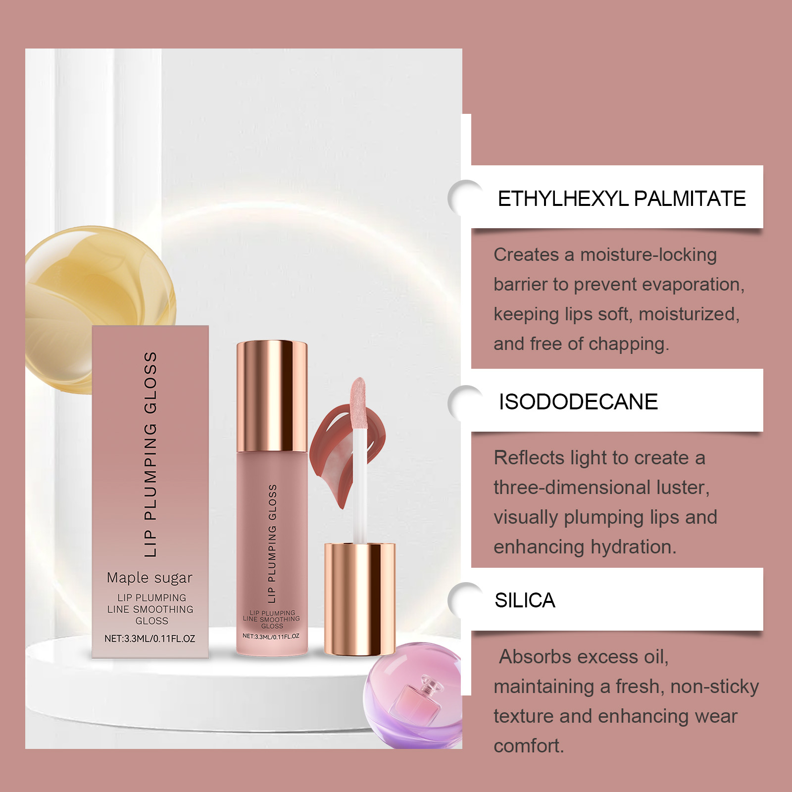 | 成分 | 三甲基硅烷氧基硅酸酯、棕榈酸乙基己酯 |