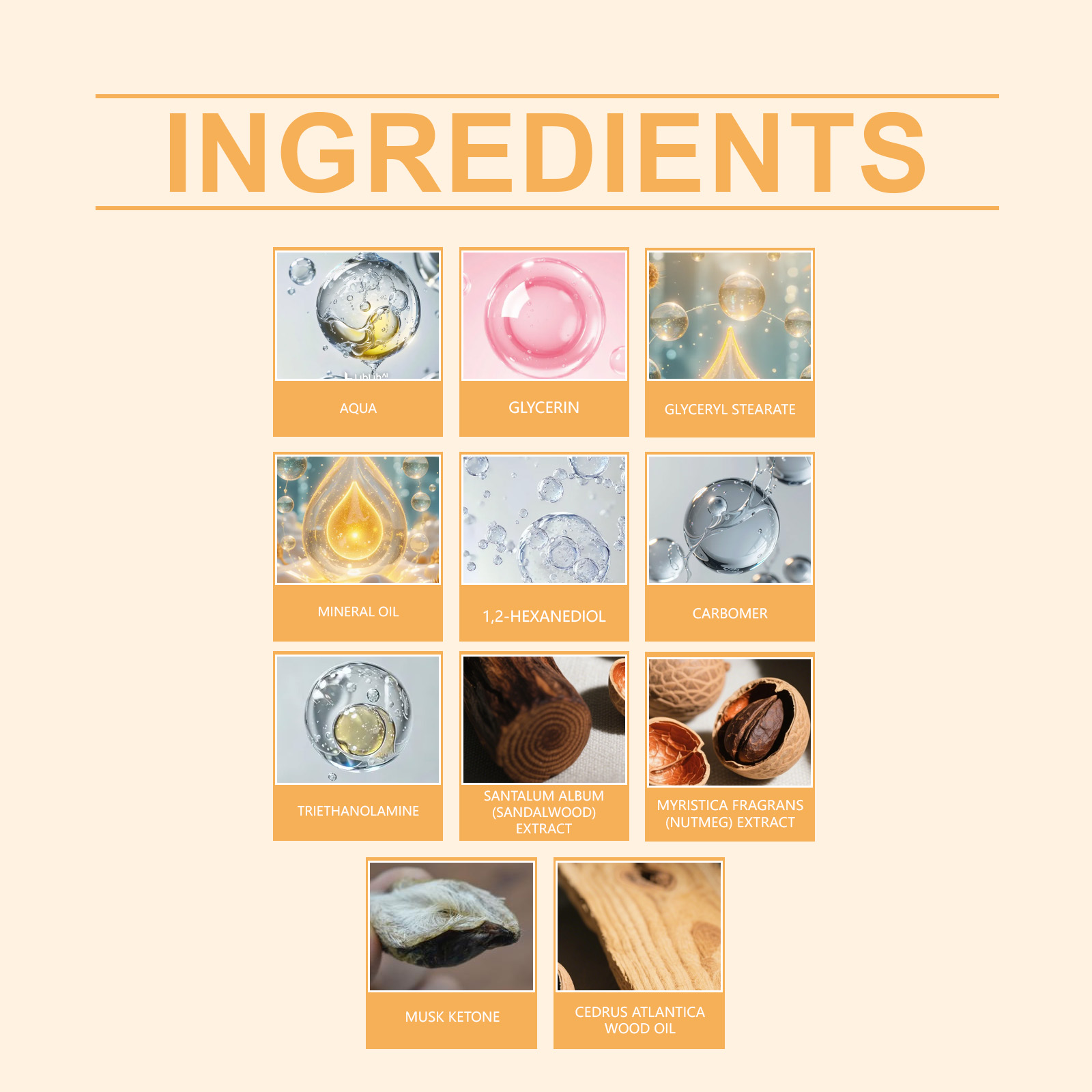 我们的男士魅力保湿身体霜,由麝香酮、雪松木油精心调配而成。专为改善干燥肌肤设计。使用方法极为便捷:清洁并擦干皮肤。取适量本产品均匀涂抹于身体皮肤。轻轻按摩直至吸收。并且可以形成保护屏障,以锁住水分,增强皮肤的光泽和弹性。