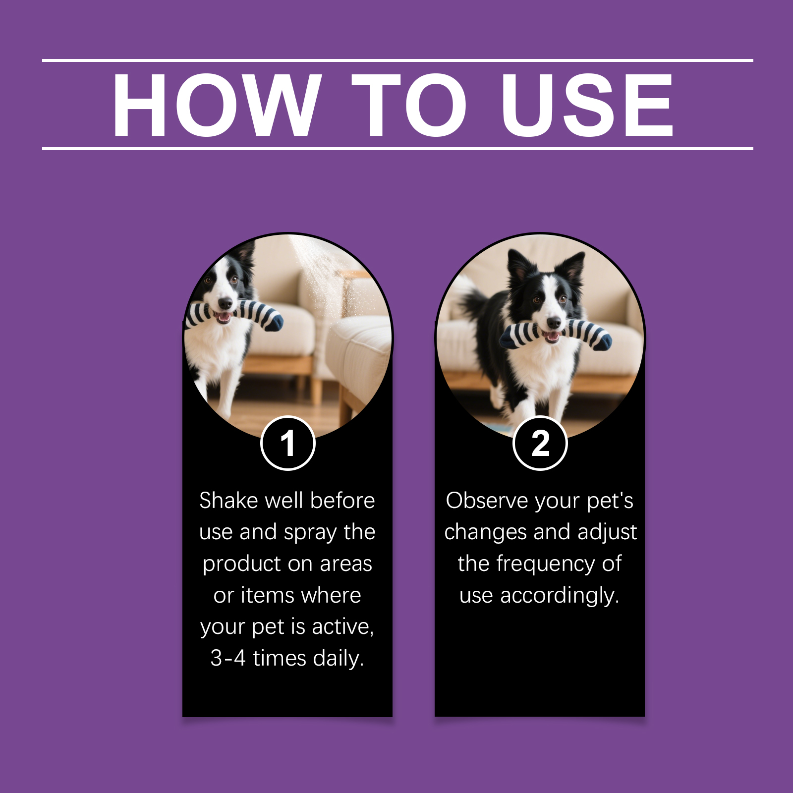 我们的狗狗护理喷雾,由薄荷脑、柠檬酸钠精心调配而成。专为舒缓情绪和减轻宠物焦虑设计。使用方法极为便捷:使用前摇匀,并将产品喷酒在宠物活动的区域或物品上每天3-4次。观察宠物的变化,并相应调整使用频率。并且可以清新气味并提升舒适度。