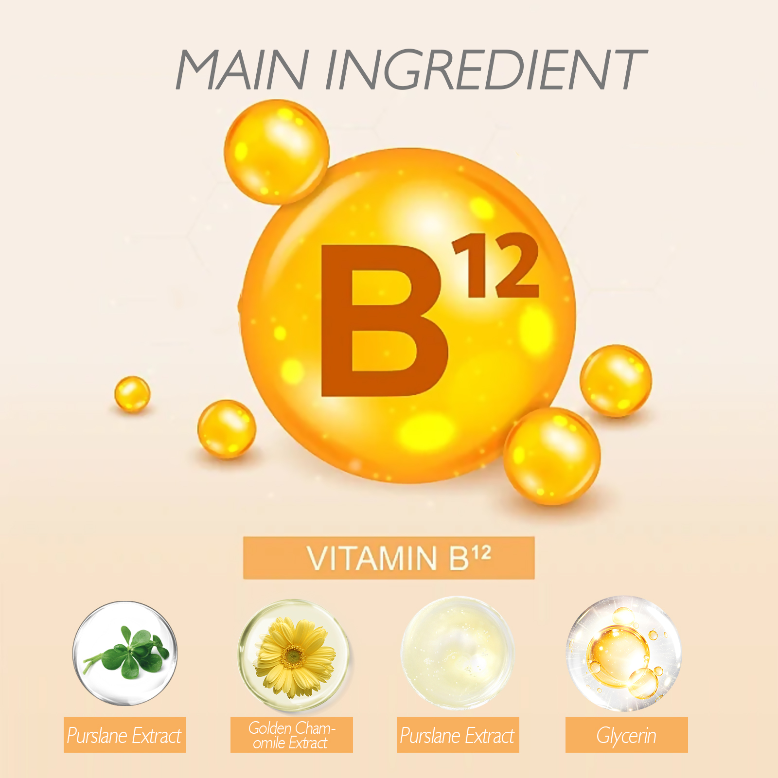 我们的维生素B12霜含有维生素 B12、马齿苋提取物、甘油。它可以缓解瘙痒、发红、脱皮刺激,牛皮癣和脂溢性皮炎等症状,补水保湿,抗菌止痒。它的使用方法很简单:首先清洁皮肤后,将其擦干,取适量本品,均匀涂抹于皮肤不适部位,用指尖轻轻按摩,直至吸收即可。使用后可以消除皮肤干燥和瘙痒,减少发痒发红,改善皮肤细胞活力,促进皮肤修复。