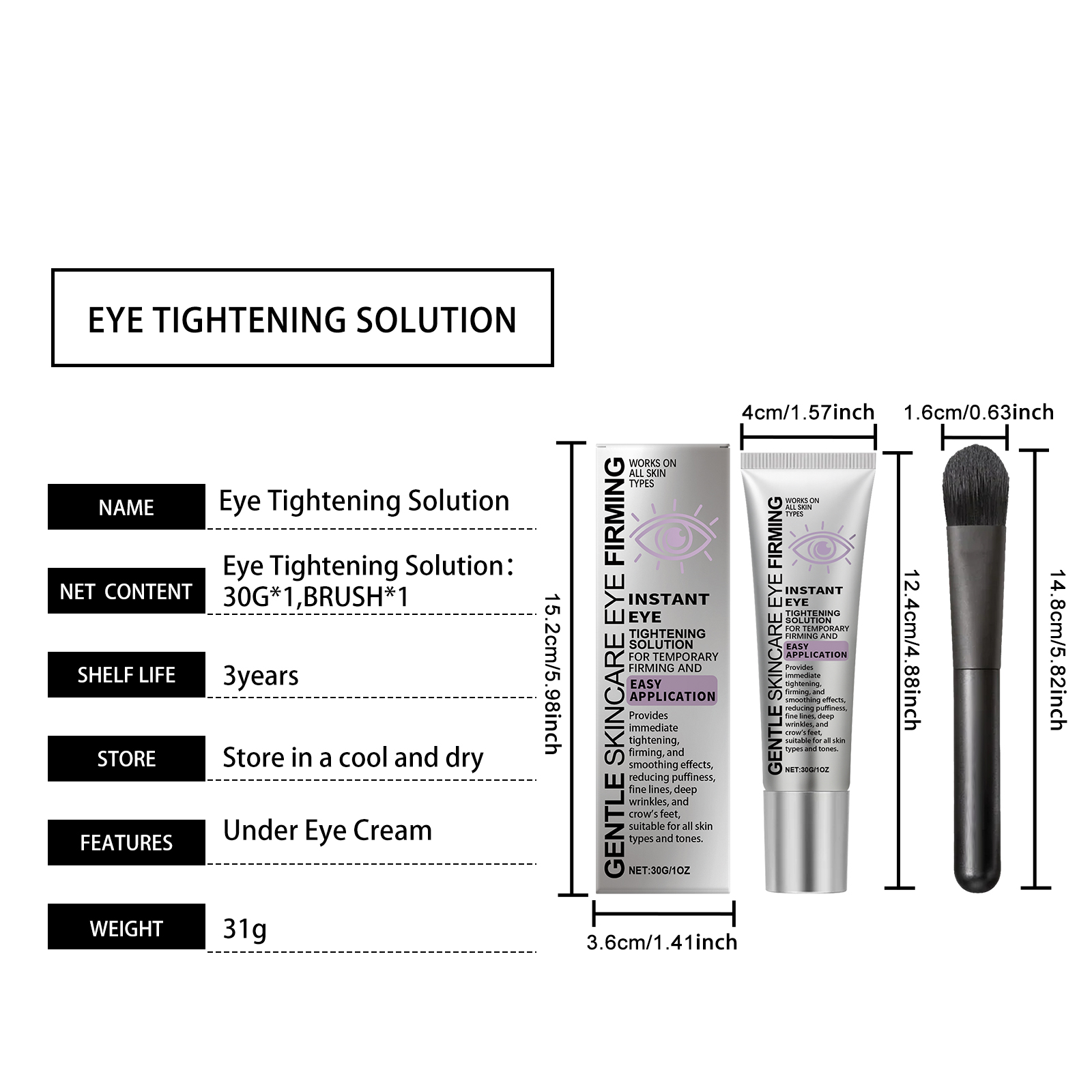 | 产品尺寸 | 眼部紧致霜:4*12.4cm,毛刷:14.8*1.6cm |