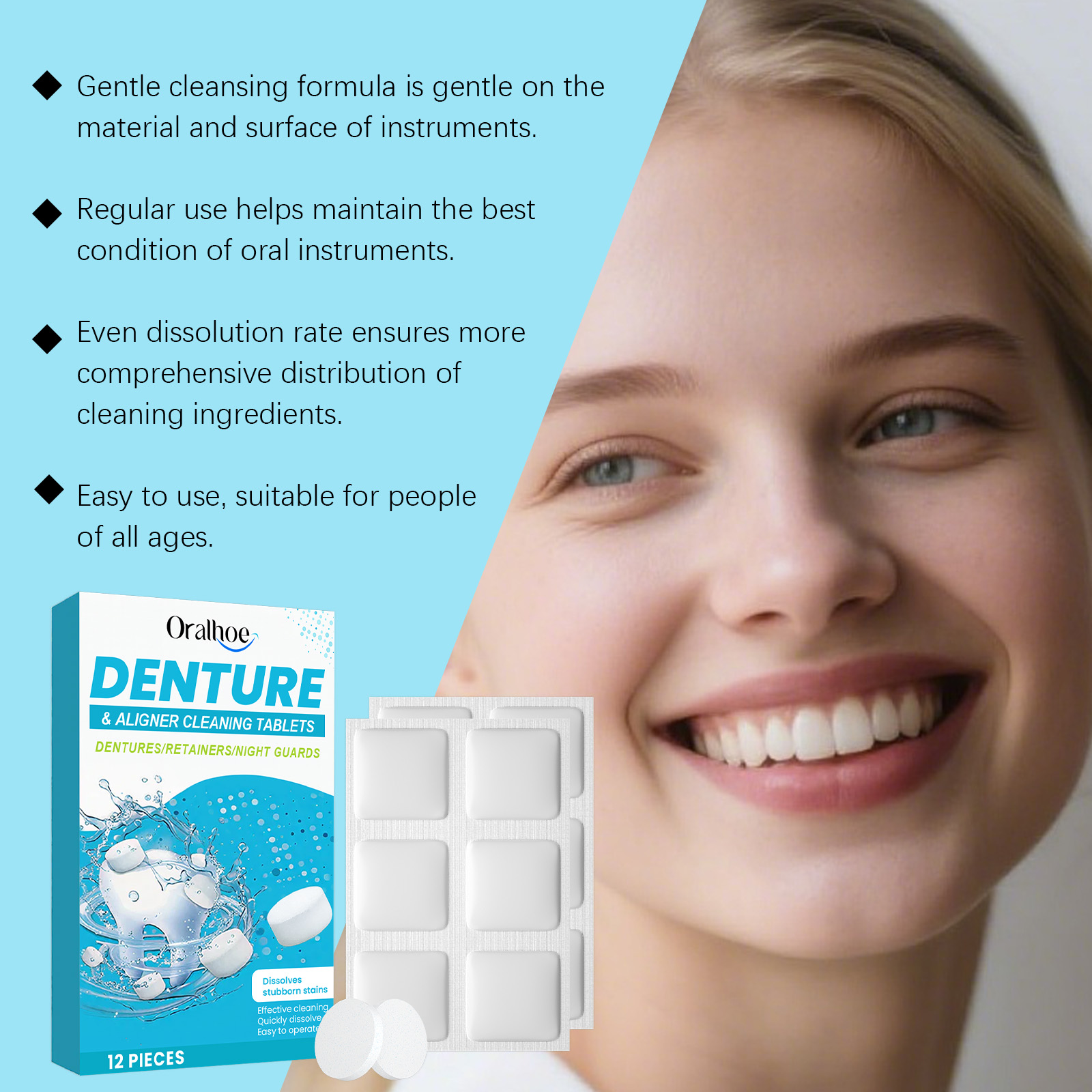 Oralhoe Denture Cleaning Effervescent Tablets Clean Impurities In Corners, Maintain Wearing Comfort, Dental Hygiene Care