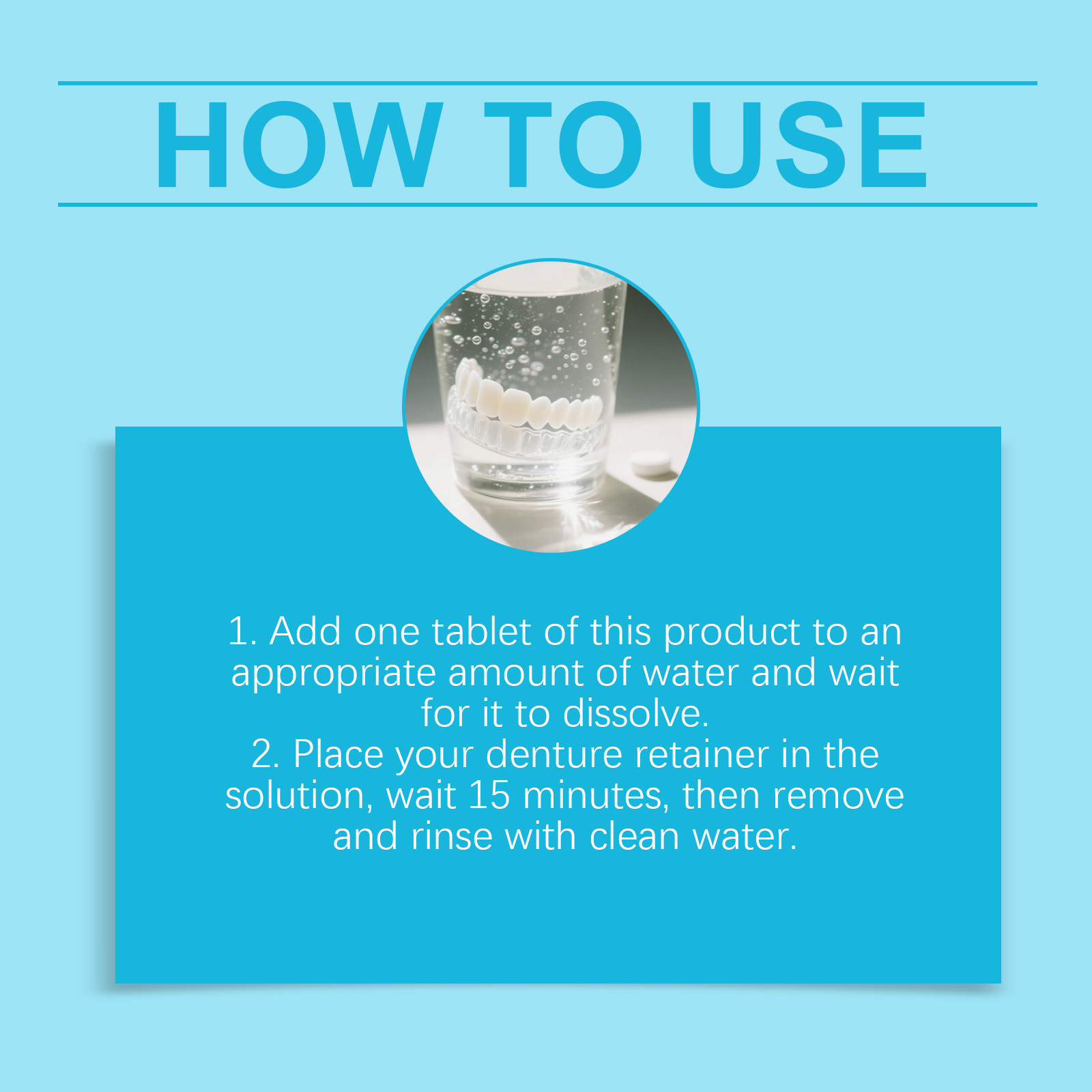 我们的假牙清洁泡腾片,由十二烷基硫酸钠、混合酶精心调配而成。专为去除缝隙中的污垢设计。使用方法极为便捷:1.将一片本产品加入适量的水中,等待其溶解。2.将假牙保持器放入溶液中,等待15分钟,然后取出并用清水冲洗。并且可以去除积累的异味。