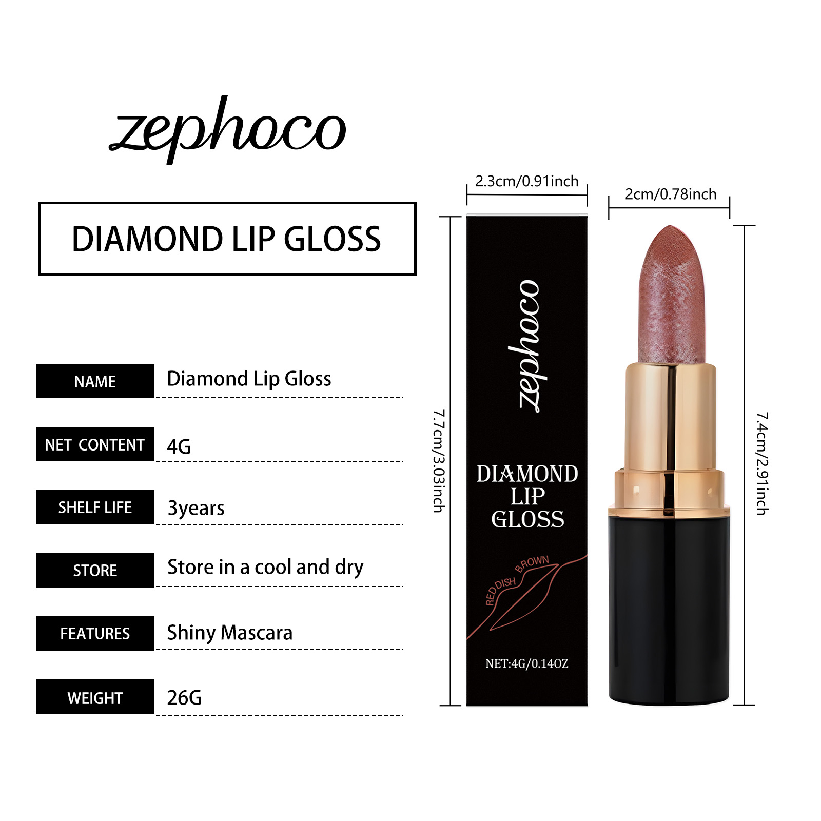 zephoco Reddish-Brown Diamond Lip Gloss Lipstick Has A Smooth Luster, Is Easy To Apply, And Has A Rich Sheen. It Is Versatile
