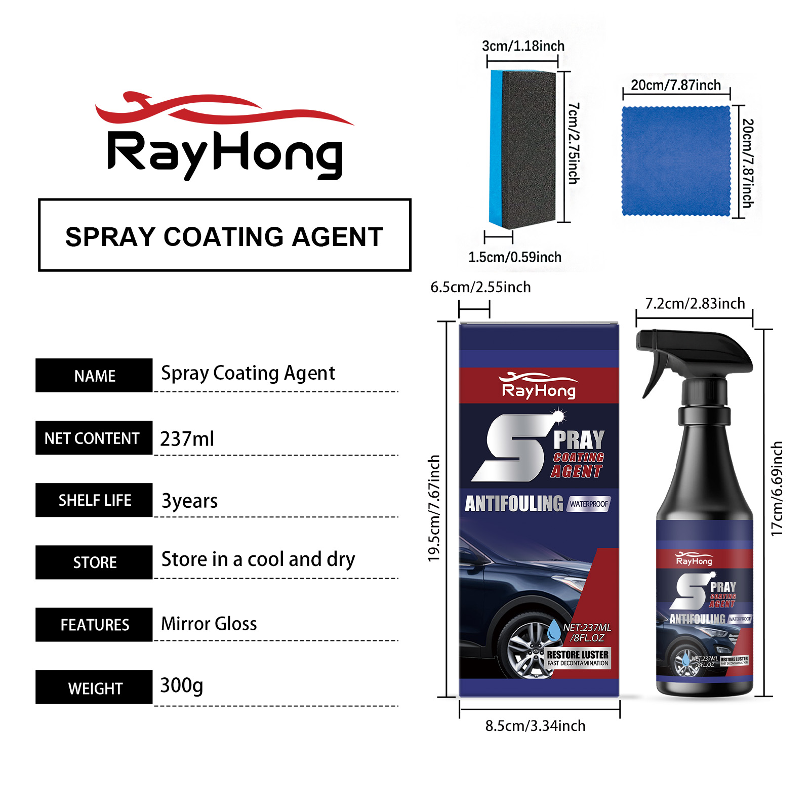 Rayhong Automobile Coating Spray Set: Anti-Fouling, Protective, Mirror Brightening And Refurbishing Coating Agent For Car Paint Coating