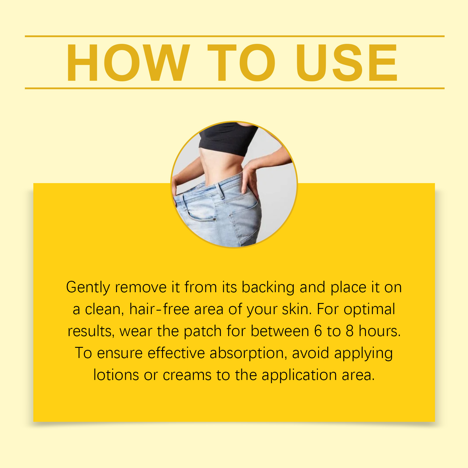 我们的身体护理贴片,由甘油、羟乙基纤维素精心调配而成。专为精准释放能量成分,持续为身体续航,活力不间断设计。使用方法极为便捷:轻轻地将贴片从背面撕下,贴在干净、无毛的皮肤上,为了达到最佳效果,建议贴片持续6至8小时,为确保有效吸收,请避免在贴片区域涂抹乳液或面霜。并且贴片可以长效作用,促进新陈代谢循环,全天候保持清爽有劲好状态,快速激活身体能量,全天候助力你活力满格前行。