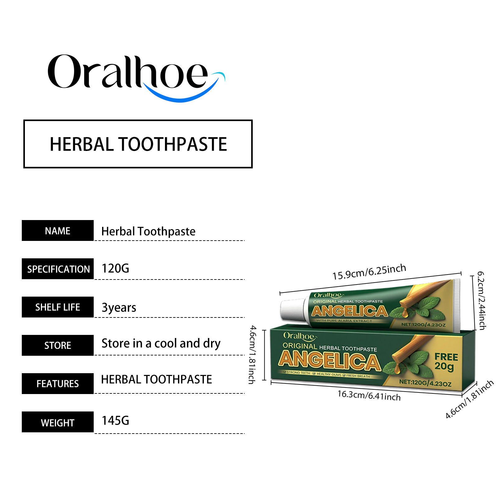 Oralhoe Herbal Fresh Toothpaste, Mild Ingredient Toothpaste, Daily Cleaning And Tooth Care Toothpaste