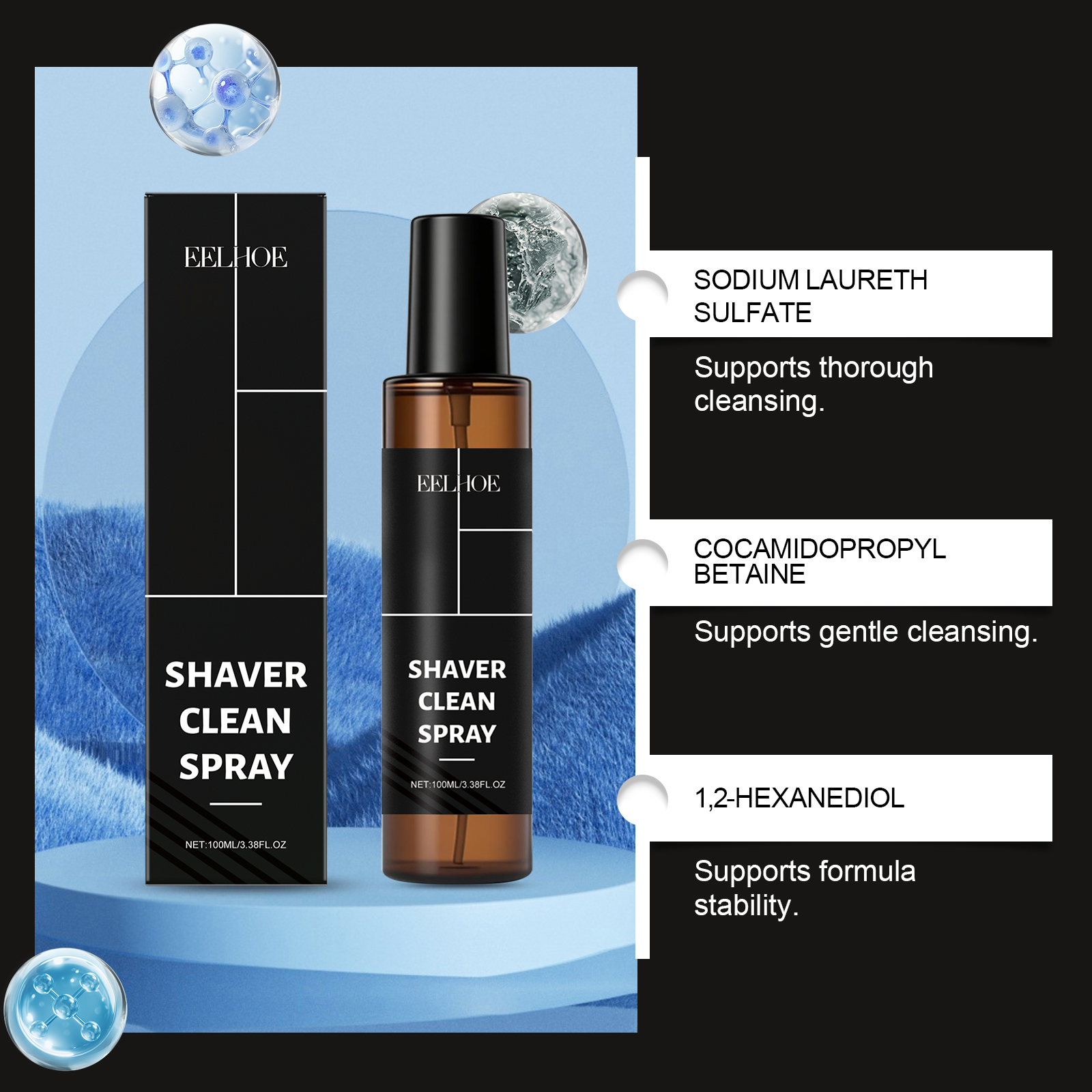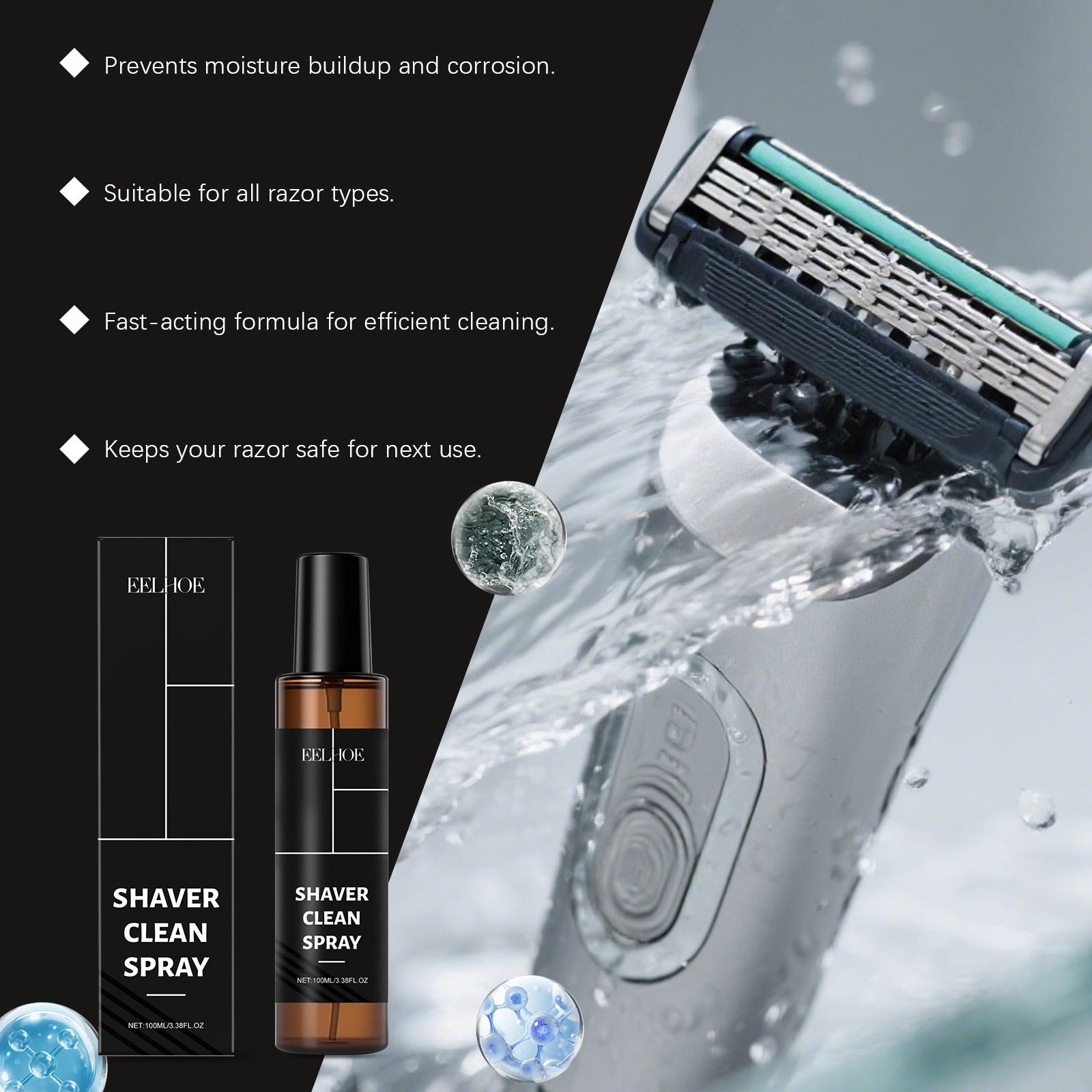 EELHOE Razor Cleaning Spray Removes Dirt And Stains, Keeps The Blade Head Clean, Suitable For Daily Cleaning And Care