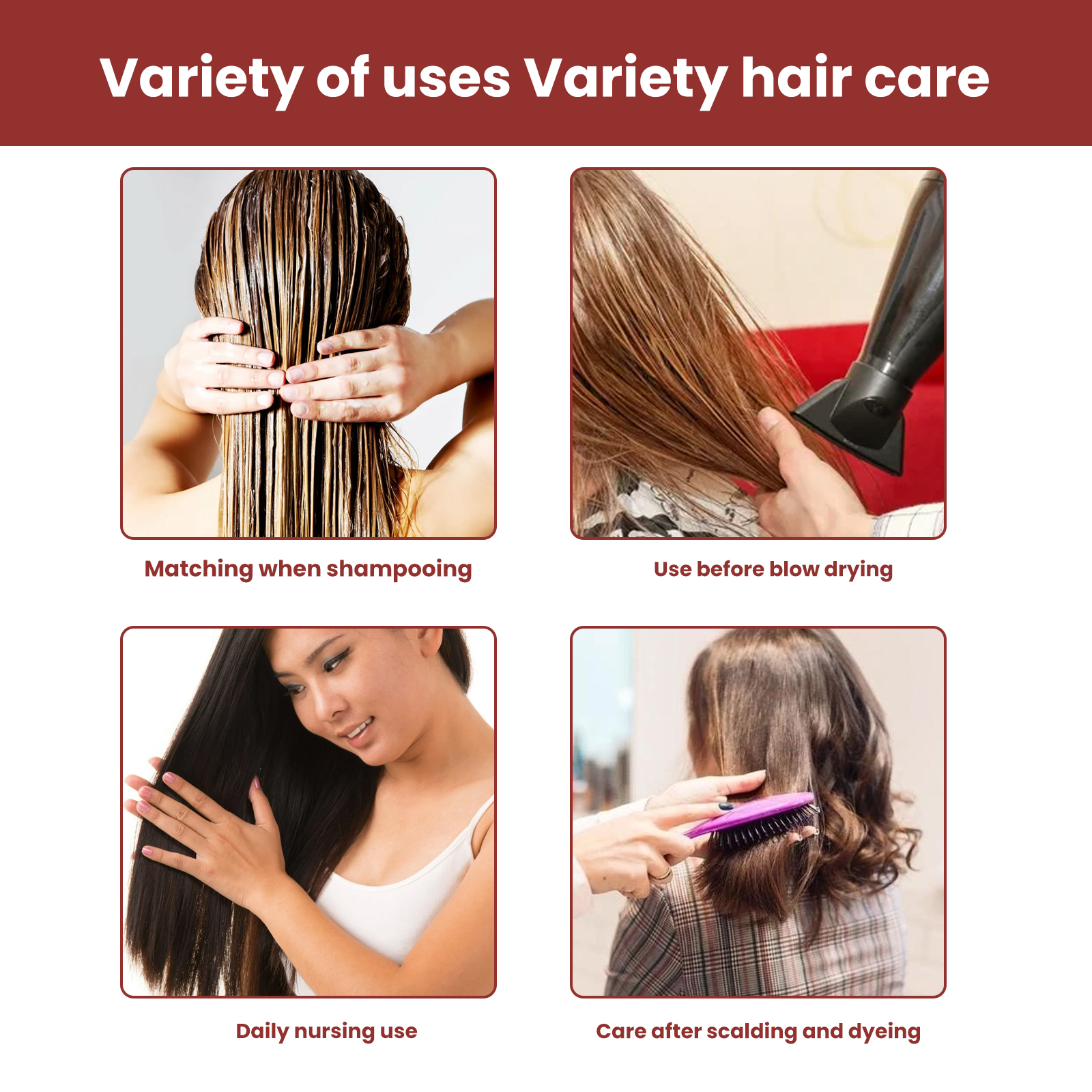 我们的柔滑免洗润发乳含有月桂醇聚醚,聚丙烯酰胺,甜菜碱。它可以有助于头发滋养修护,促进毛鳞生长,修复裂发,形成天然保护层,促进头发生长。它的使用方法很简单:首先洗完头发后,将湿头发吹干至70%,之后取1-2次放在手掌上,均匀涂抹在发丝上即可。使用后可以滋养和保护头发,改善毛囊的健康,减少头发干燥,增加光泽度,使头发更乌黑亮丽。