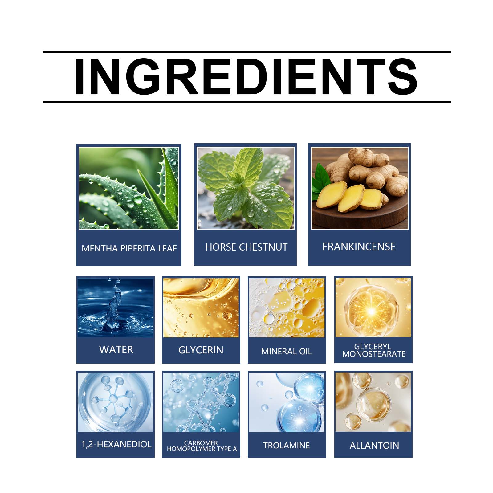 我们的腿部护理霜,由甘油、矿油、甘油硬脂酸酯精心调配而成。专为缓解静脉曲张,舒缓扩张的毛细血管,缓解腿部、脚踝和足部肿胀和沉重感设计。使用方法极为便捷:清洁肌肤并保持干燥,取适量本品均匀涂抹在腿部有肿胀等受影响的肌肤上,轻柔按摩直至吸收。并且它可以缓解疼痛、肿胀和瘙痒等,促进血液循环,提高腿部舒适度,改善腿部外观。