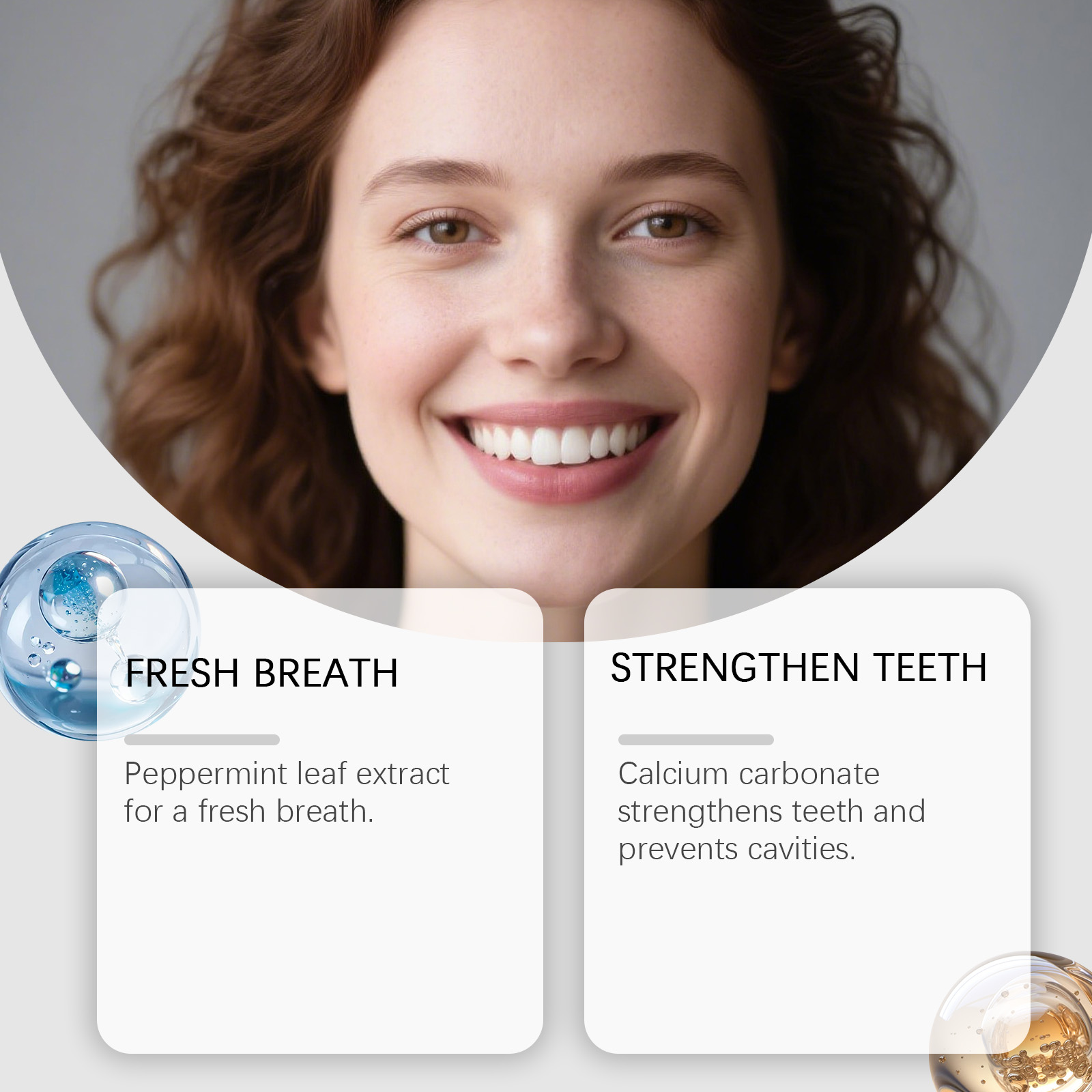 我们的薄荷牙膏,由羟基磷灰石、乳酸杆菌发酵产物精心调配而成。专为强化牙齿并预防蛀牙设计。使用方法极为便捷:将牙刷沾湿,然后在牙刷上涂抹适量牙膏。用牙刷轻轻刷洗所有牙齿表面2-3分钟,然后用水漱口。并且具有清新口气并留下持久的香味。