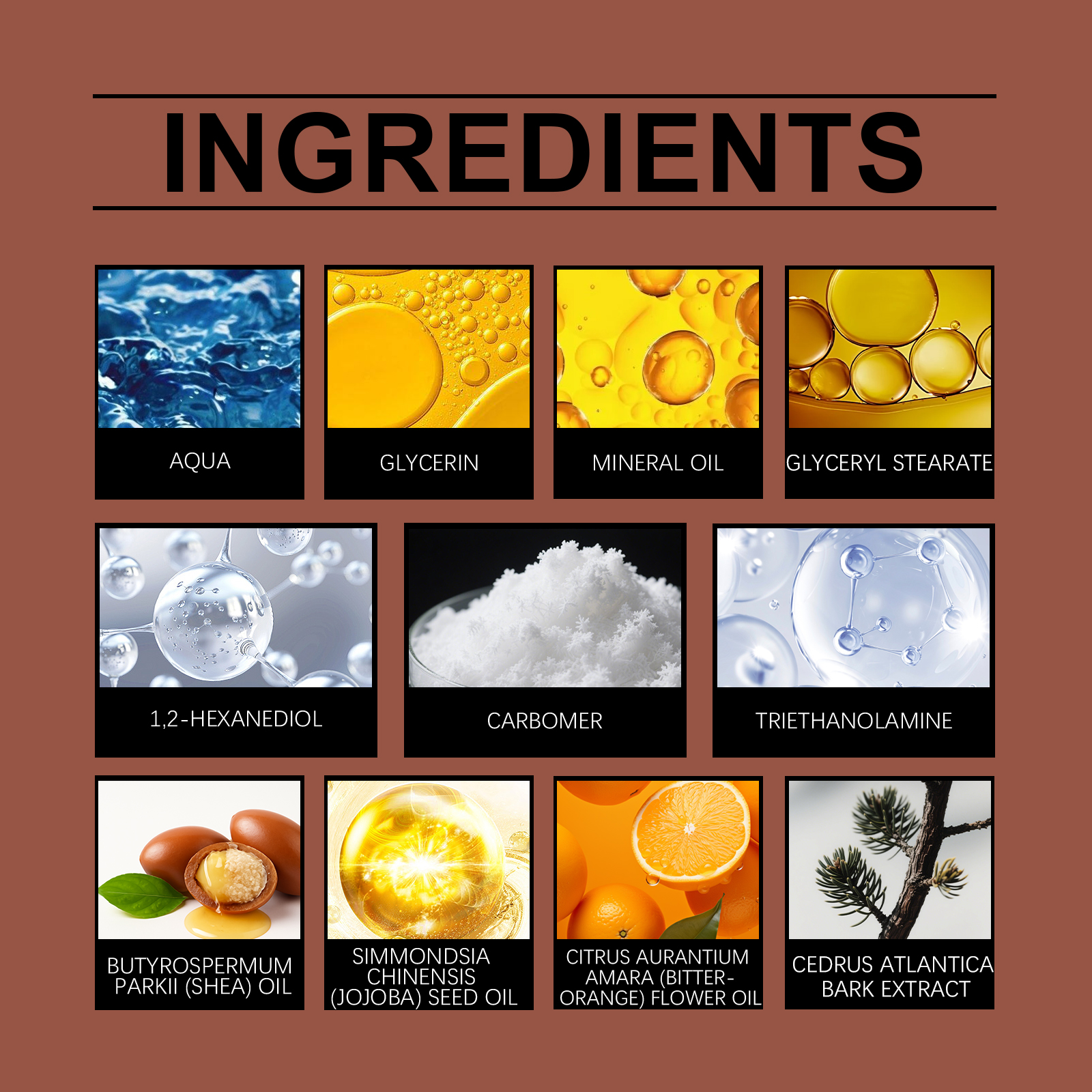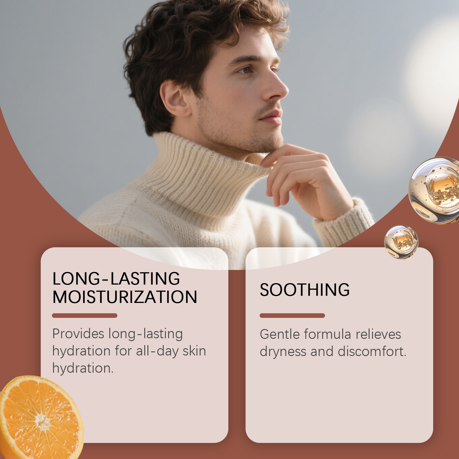 我们的男士身体润肤霜,由橙花油、雪松提取物精心调配而成。专为全天候保持肌肤水润设计。使用方法极为便捷:将适量本产品涂抹于皮肤上,清洁并擦干皮肤。轻轻按摩,以促进吸收。并且采用温和配方,能缓解干燥和不适。