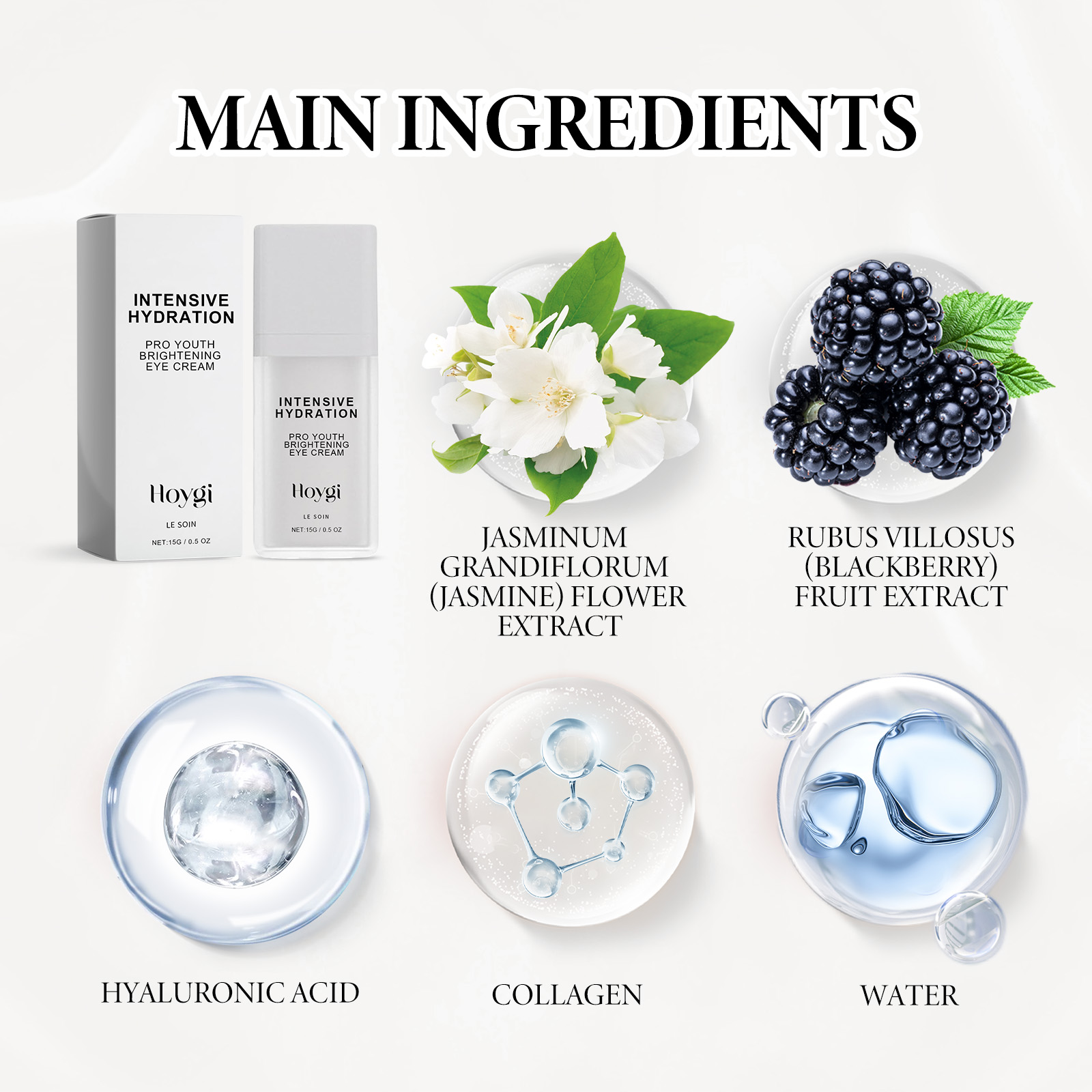 | 成分 | 透明质酸、胶原蛋白、茉莉花提取物 |