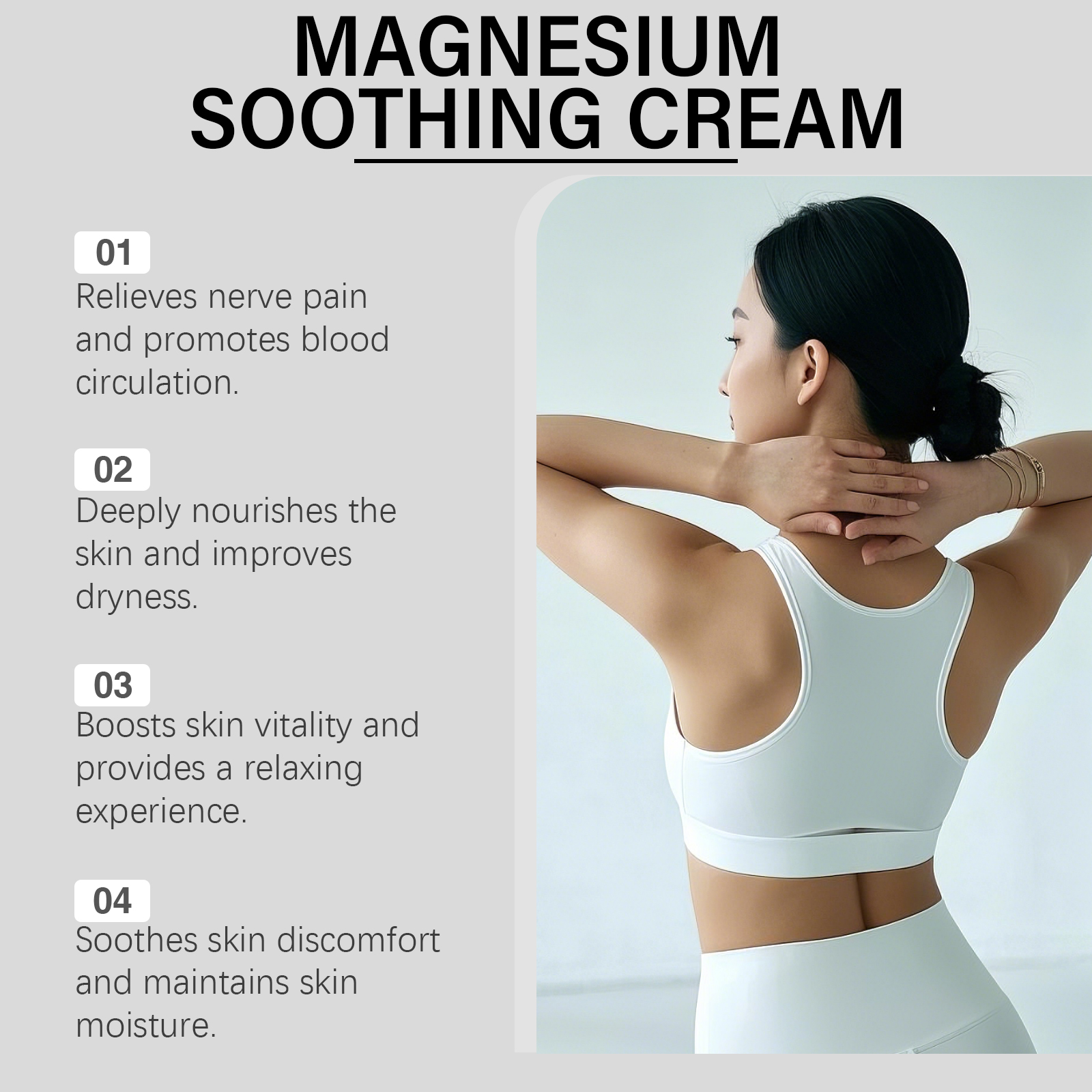 我们的滋润肌肤护理霜,由甘油、矿油、甘油硬脂酸酯精心调配而成。专为缓解神经疼痛,促进血液循环设计。使用方法极为便捷:清洁肌肤并保持干燥;取适量本品均匀涂抹在手部、腿部、背部处肌肤,轻柔按摩直至吸收。并且它可以深层滋养肌肤改善肌肤干燥,提高肌肤活力提供放松体验。