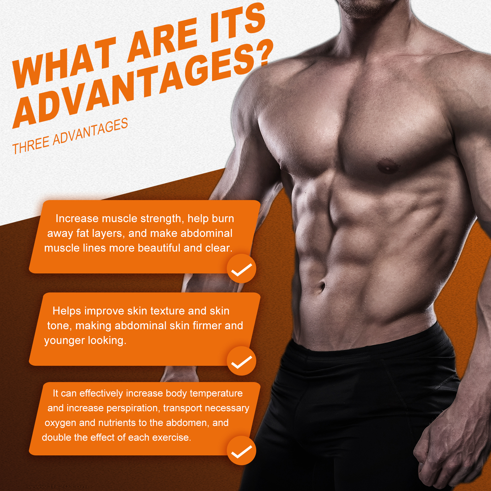 我们的肌肉护理霜含有甘油、卡波姆、透明质酸钠。它可以增加肌肉力量,帮助燃烧脂肪层,使腹肌线条更加美丽和清晰,帮助改善皮肤质地和肤色,可以有效地提高体温和增加排汗,将必要的氧气和营养物质输送到腹部。它的使用方法很简单:运动前,取适量本品均匀涂抹于腹部,轻轻按摩10-15分钟至吸收,即可照常运动。并且可以塑形。