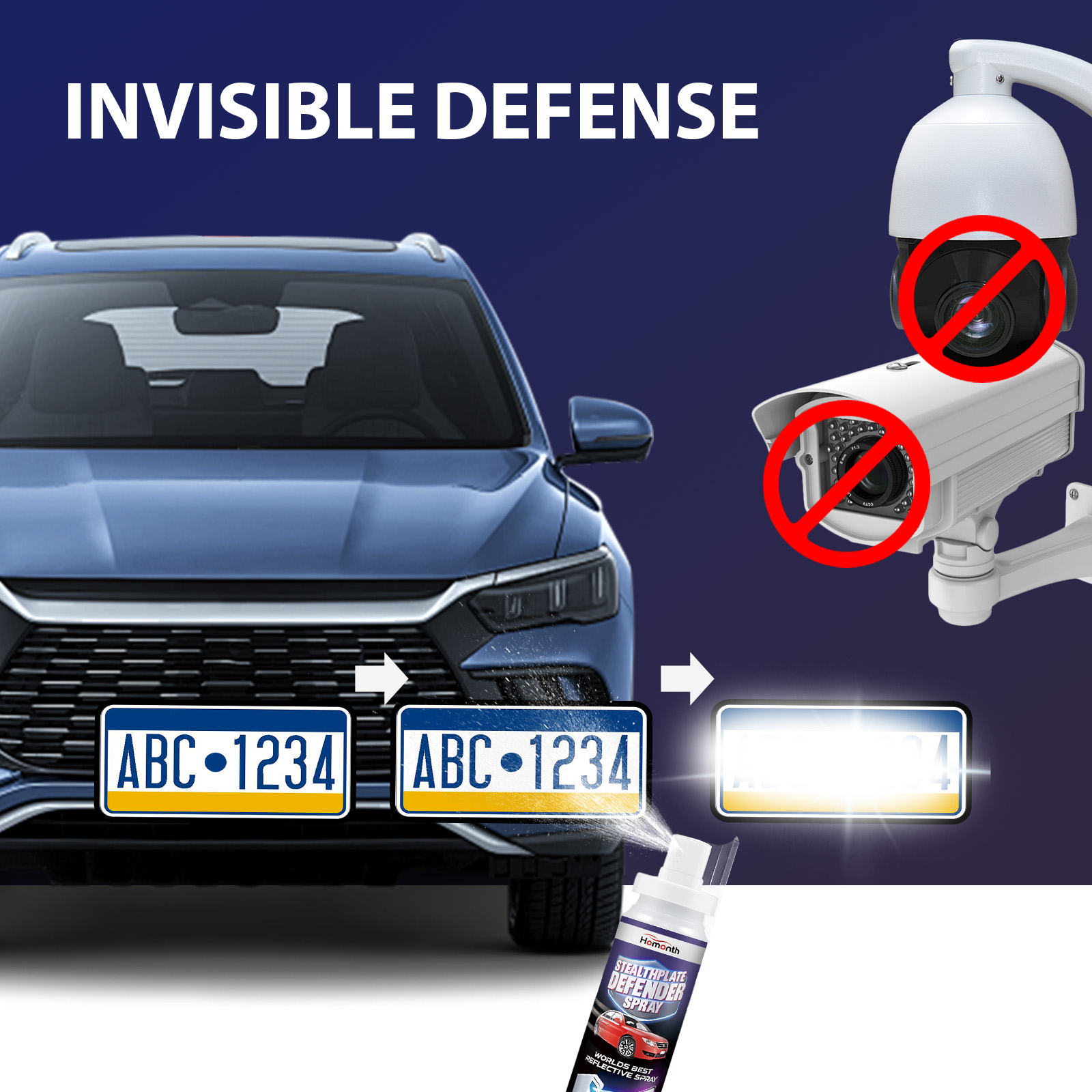 我们的隐形防御喷雾含有甘油、防水剂、溶剂。它可以阻挡测速相机和雷达发出的红外信号和可见光谱闪光。它的使用方法很简单:使用前请将车牌清洁干净,待其表面干燥后再喷上适量的喷剂。可轻松喷涂在车牌上,无需专业人员帮助,也无需复杂工具。