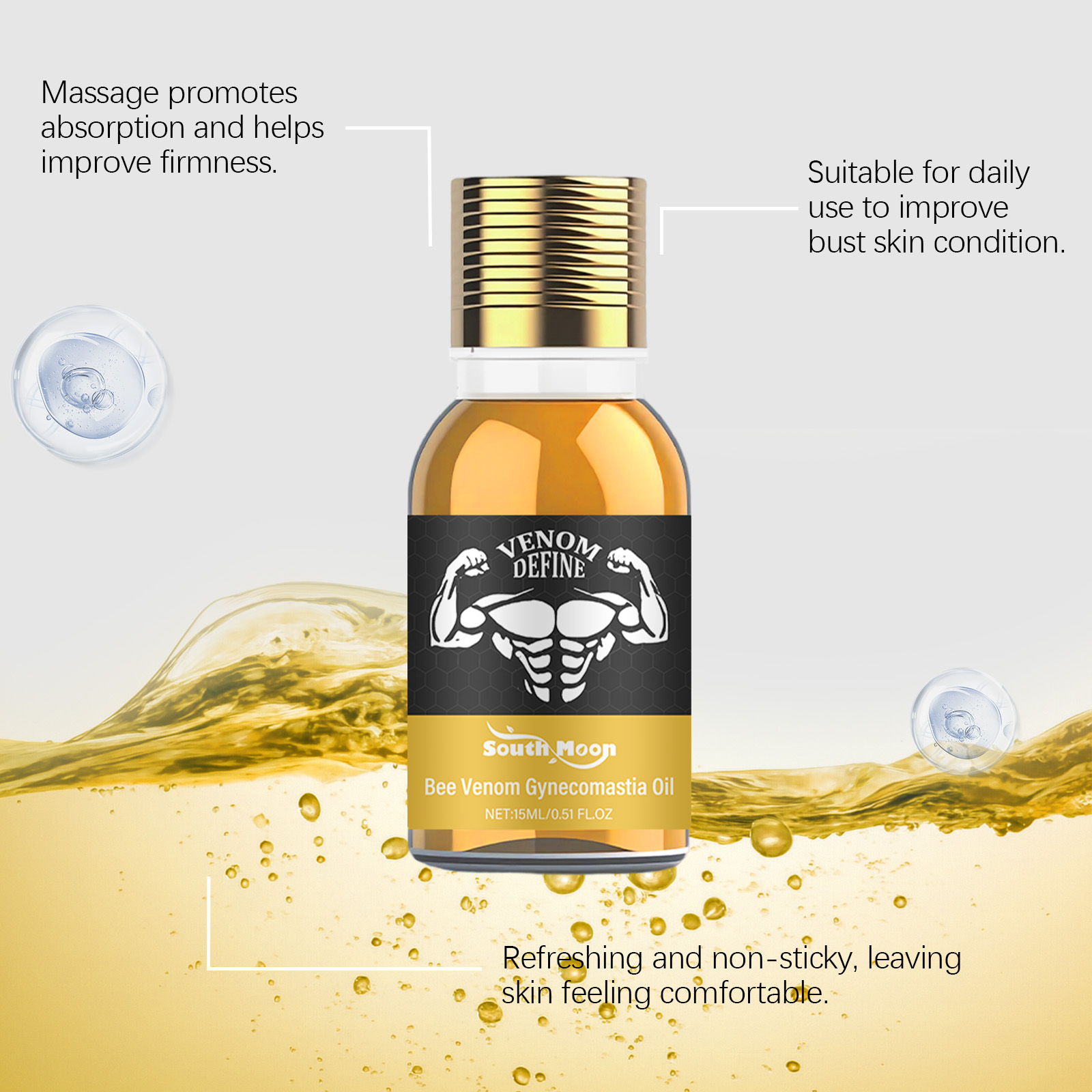 我们的男性胸部护理油,由姜油、薰衣草油精心调配而成。专为改善胸部轮廓设计。使用方法极为便捷:清洁并擦干胸部皮肤,取适量本产品均匀涂抹于胸部,并轻轻按摩至吸收。并且可以提供清爽的体验并提升活力。