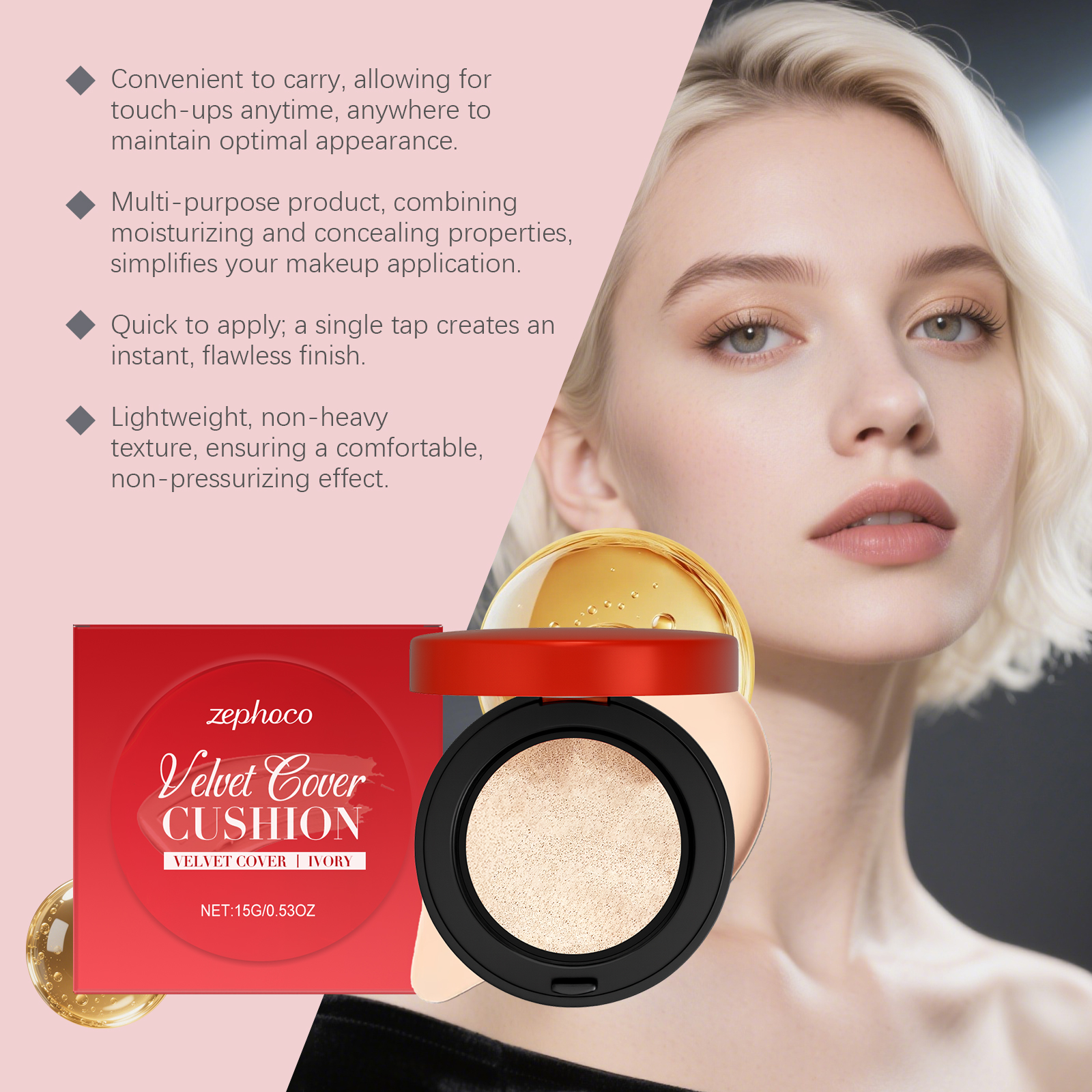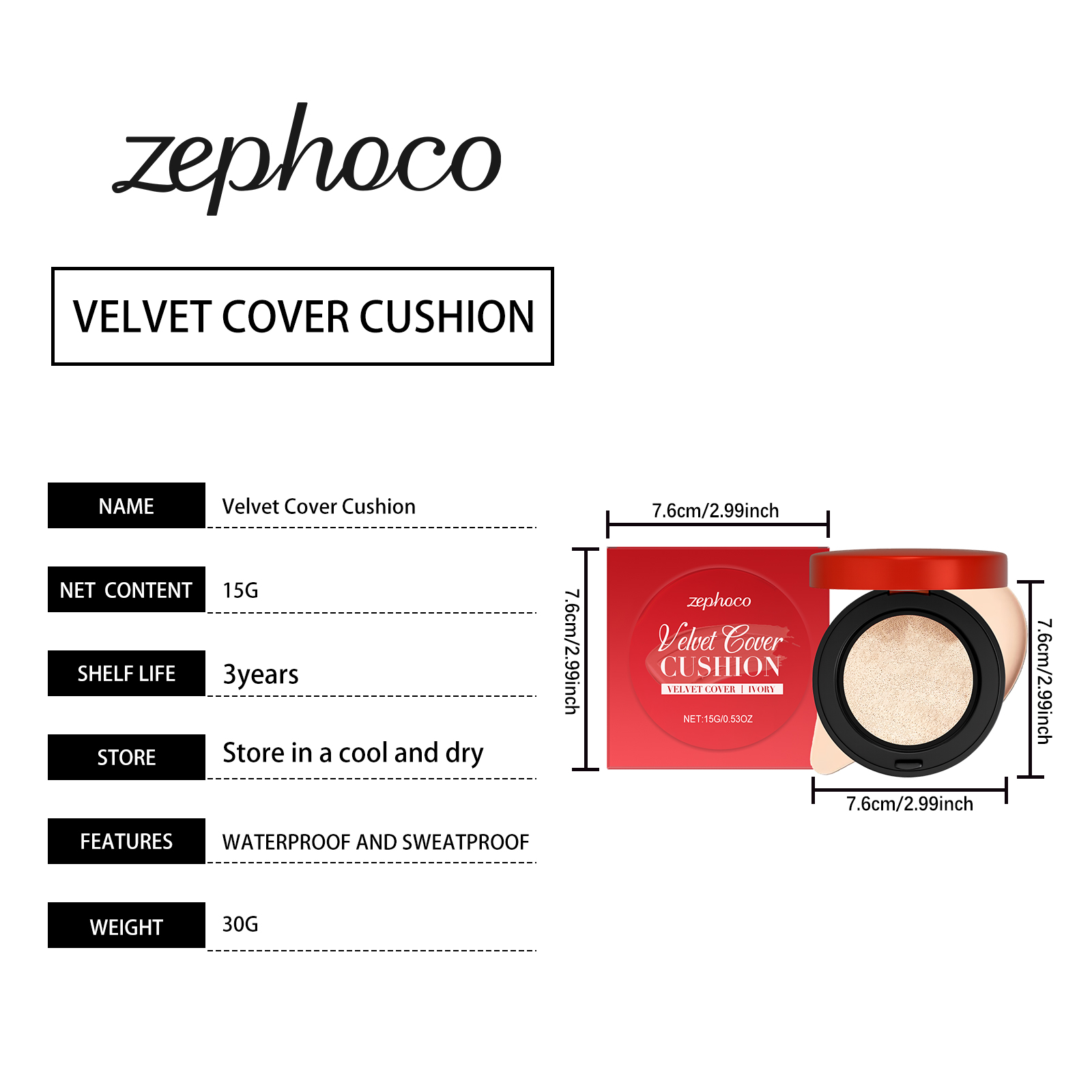 zephoco Ivory White Moisturizing Concealer Cushion Provides Natural Makeup Retention, A Light And Snug Fit, Enhances Skin Tone, And Hydrates
