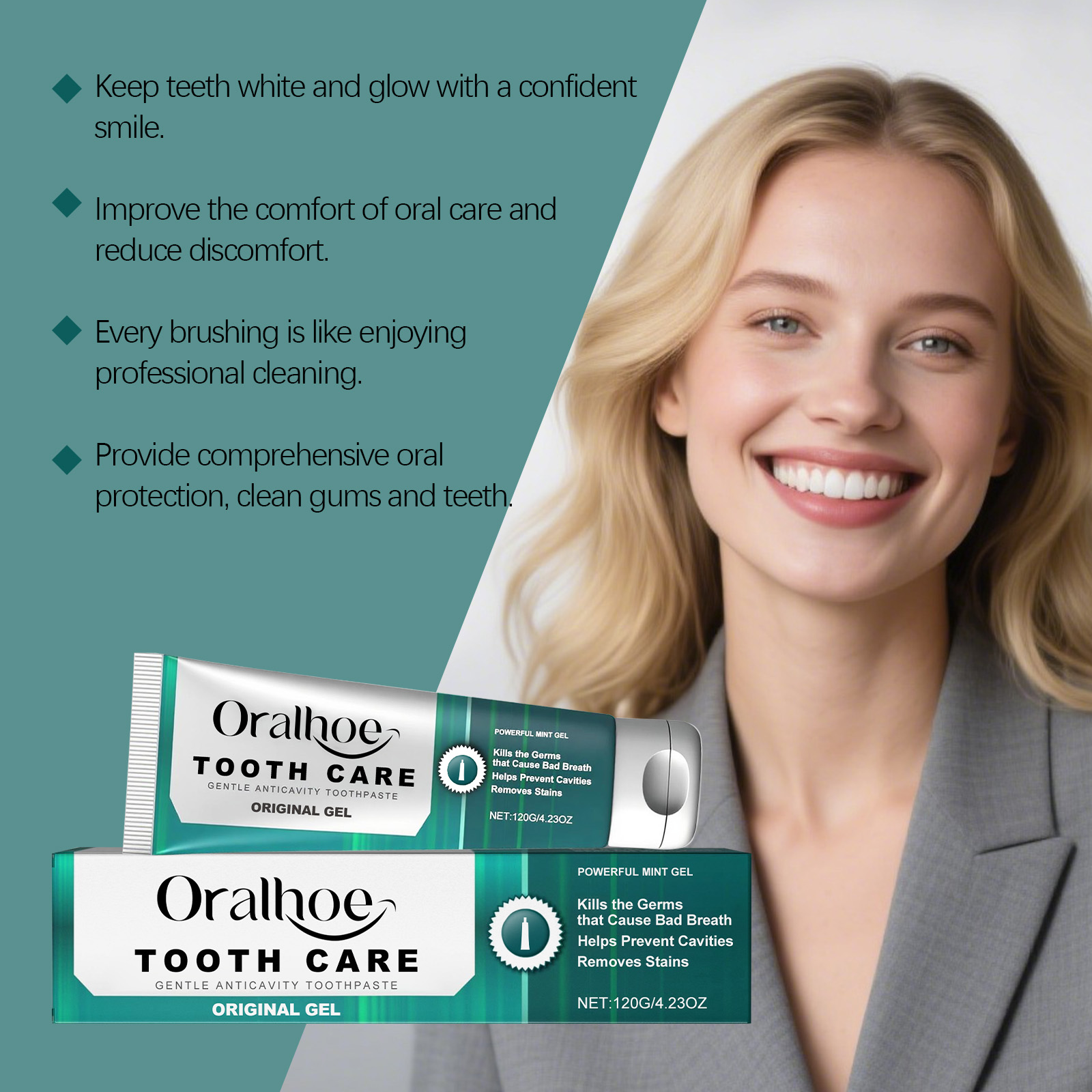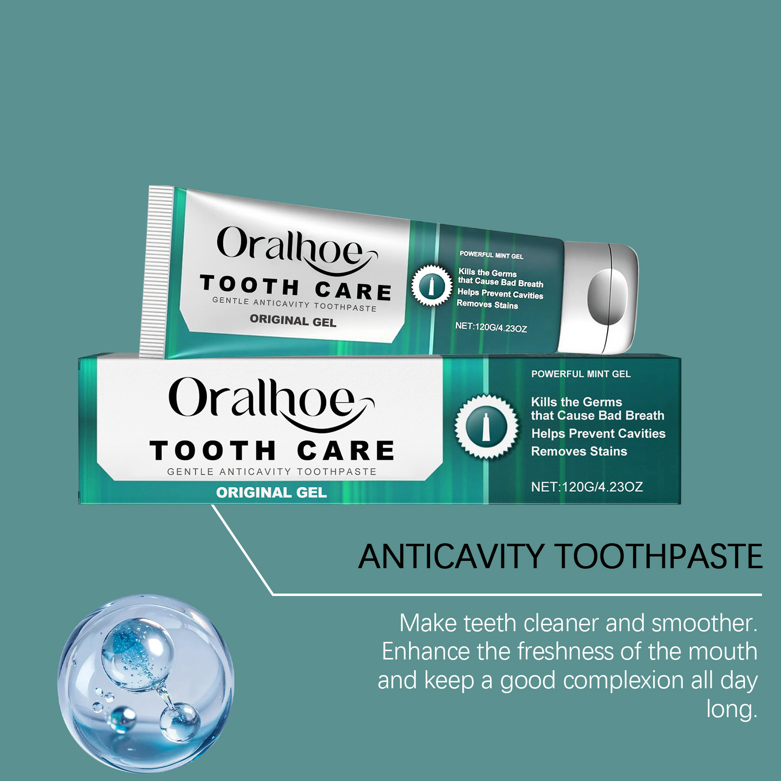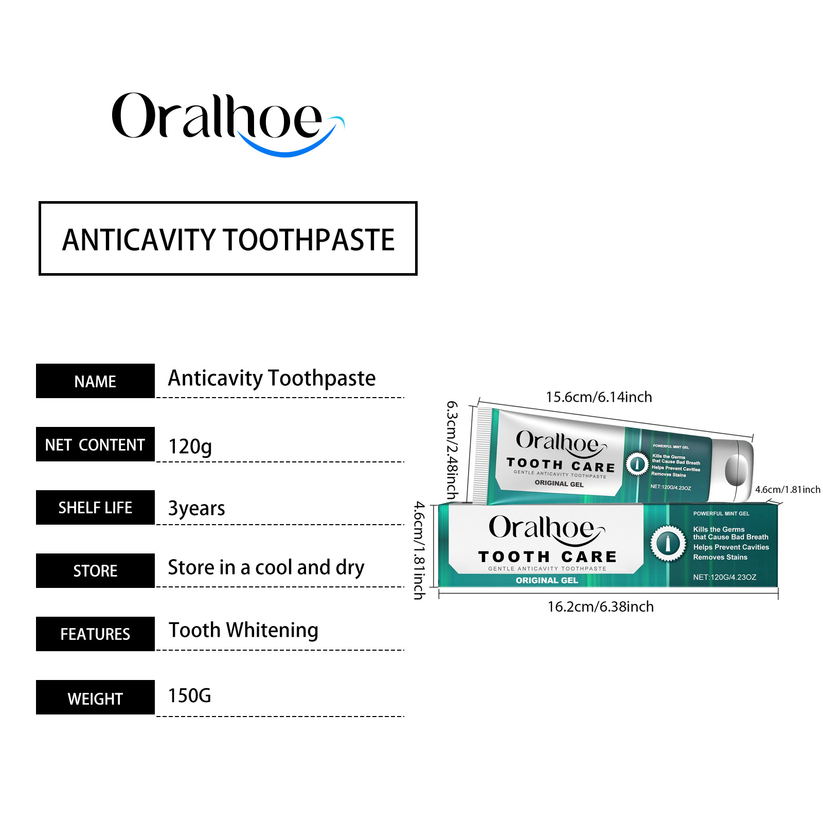 Oralhoe Peppermint Refreshing Care Toothpaste Protects Gums, Cleans Stains And Tartar. Peppermint Freshens Breath And Brightens Teeth