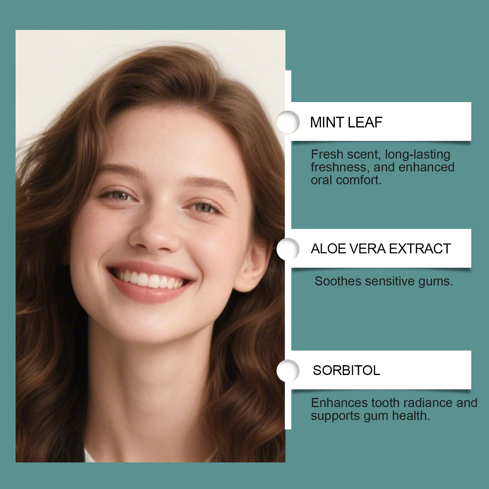我们的薄荷清新护理牙膏,由薄荷叶、芦荟提取物精心调配而成。专为清洁牙齿表面,减少沉积物设计。使用方法极为便捷:1.用清水漱口,使牙齿湿润。2.在牙刷上放适量的牙膏,刷牙2-3分钟。3.用清水漱口,直到口腔干净。并且可以防止牙垢堆积,保持牙齿明亮和清洁。