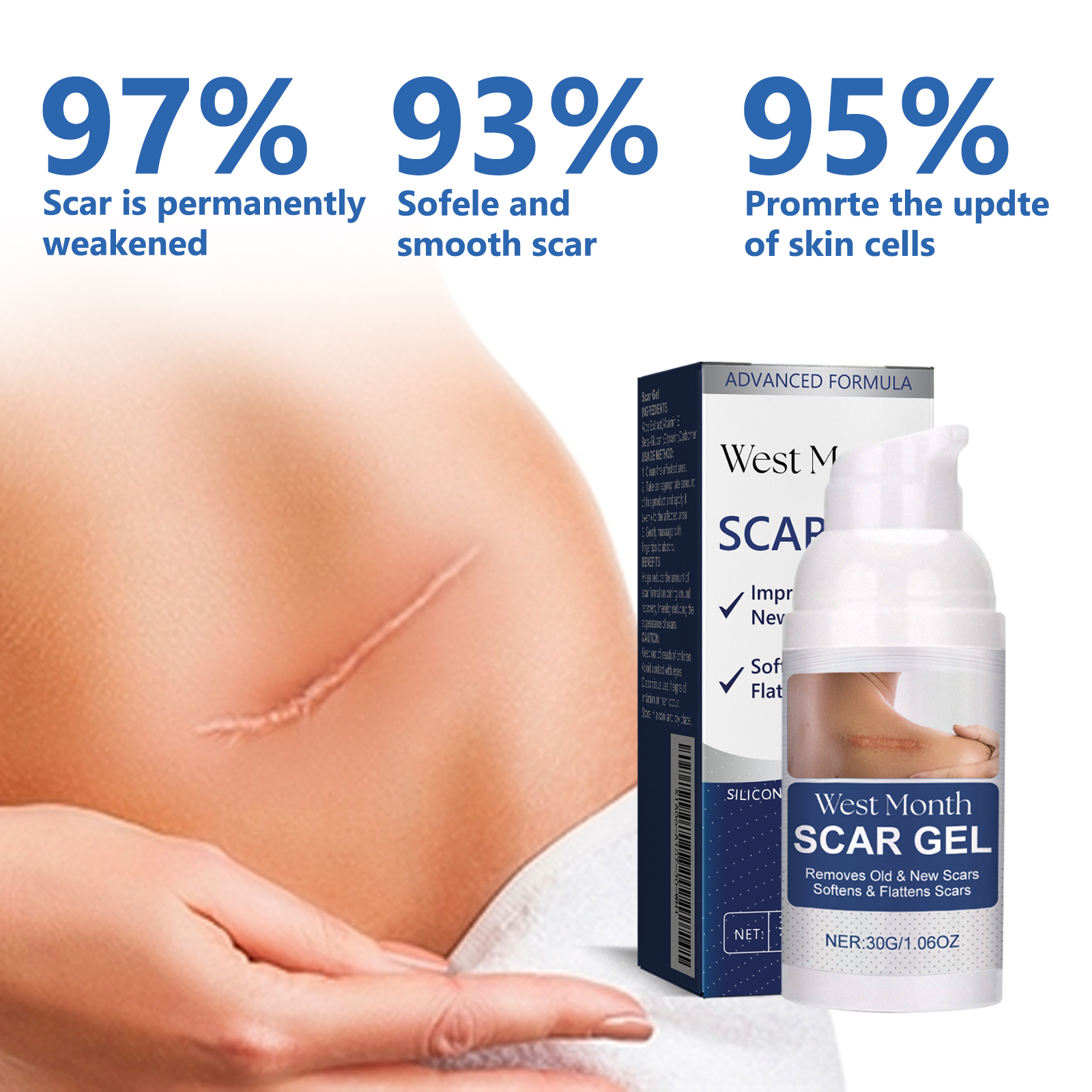 West Month Scar Whitening Gel, Repair Damaged Skin Fades Scars Scar Smoothing Skin Care Gel