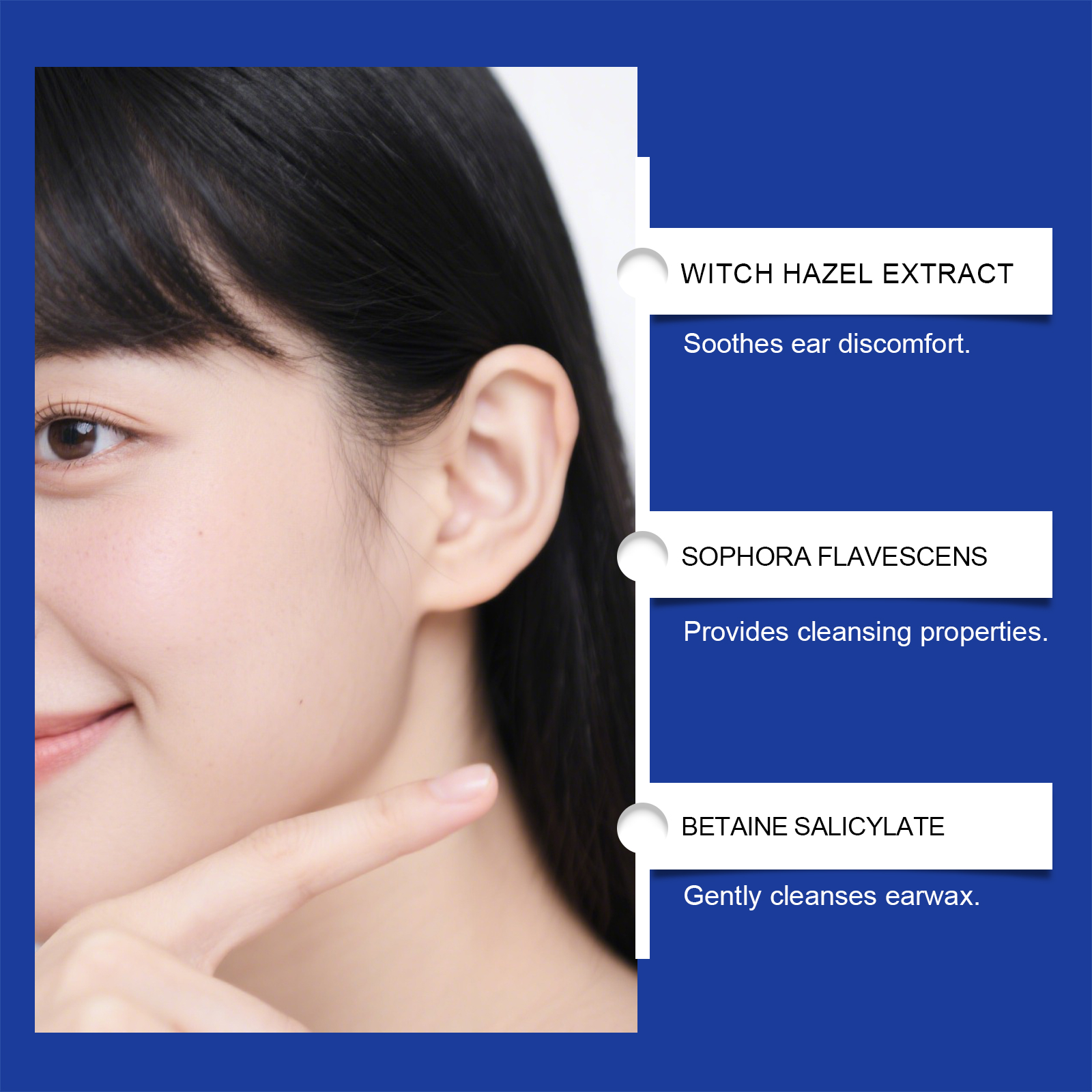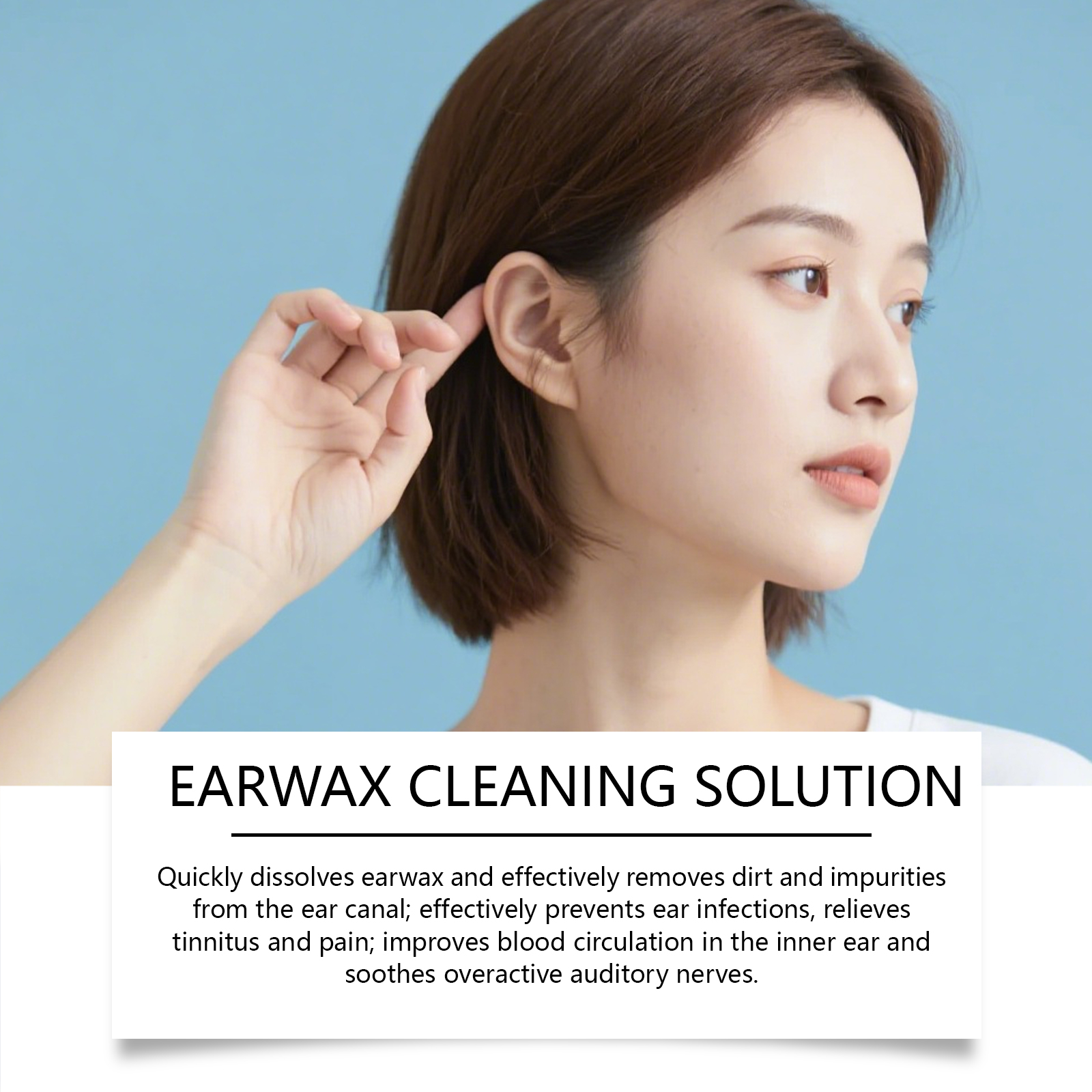 我们的滴耳液套装,由甘油、甜菜碱水杨酸盐精心调配而成。专为迅速溶解耳垢,并有效清除耳道内的污垢和杂质设计。使用方法极为便捷:1. 清洁双手,将滴剂滴入耳中,软化耳垢,使其更容易清除。2. 将耳球尖端轻轻置于外耳道入口处,然后慢慢松开手指,让耳球自然吸入少量水或空气。3. 用干净的毛巾或棉签(仅限外用)轻轻擦干耳朵周围区域。并且它可以有效预防耳部感染,缓解耳鸣与疼痛,改善内耳血液循环,舒缓过度活跃的听觉神经。