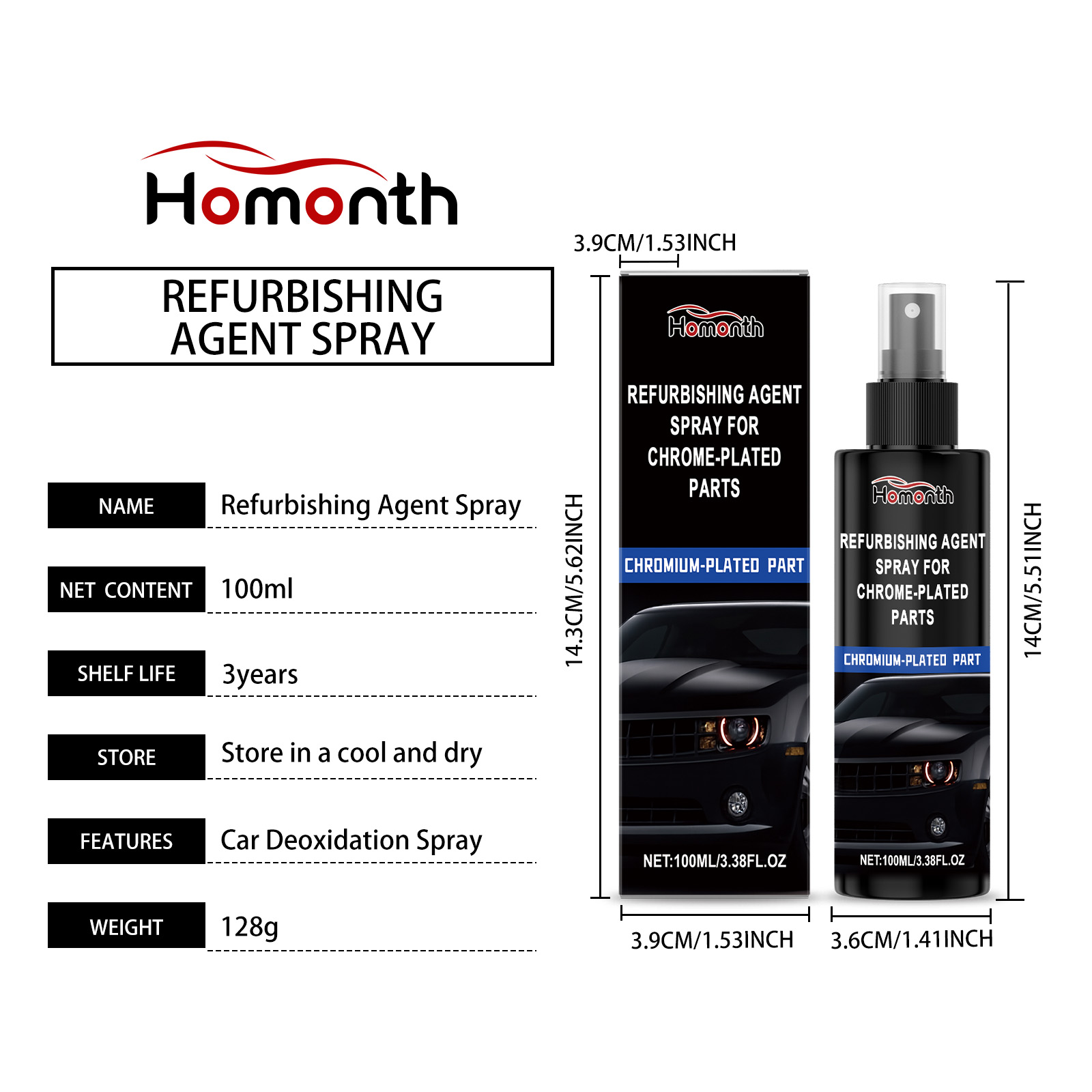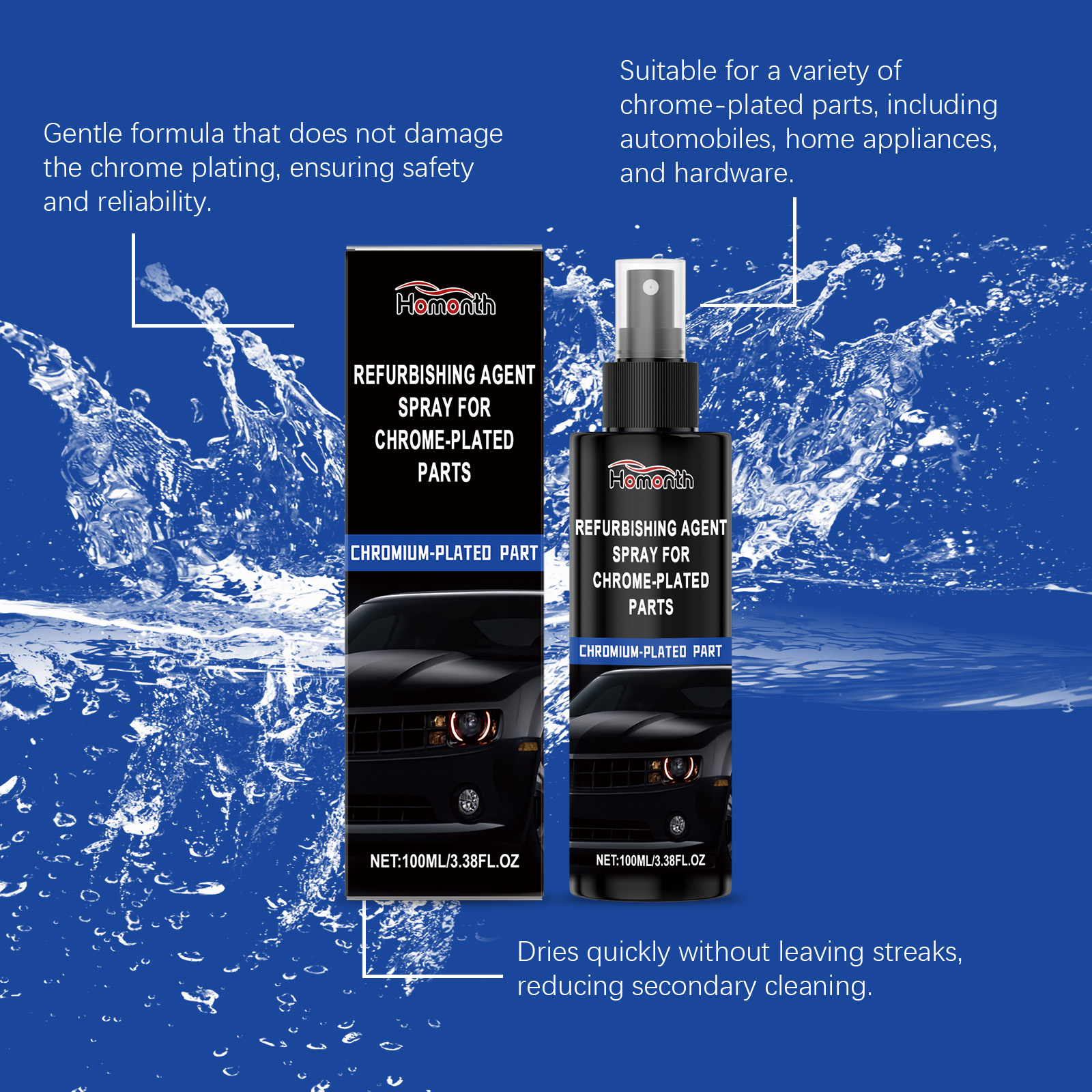 Homonth Chrome-Plated Parts Care Spray, Anti-Oxidation, Decontamination, Cleaning, Anti-Rust And Polishing Agent For Automotive Hardware Accessories