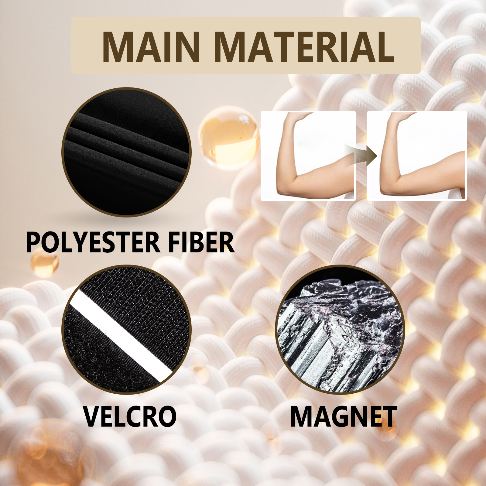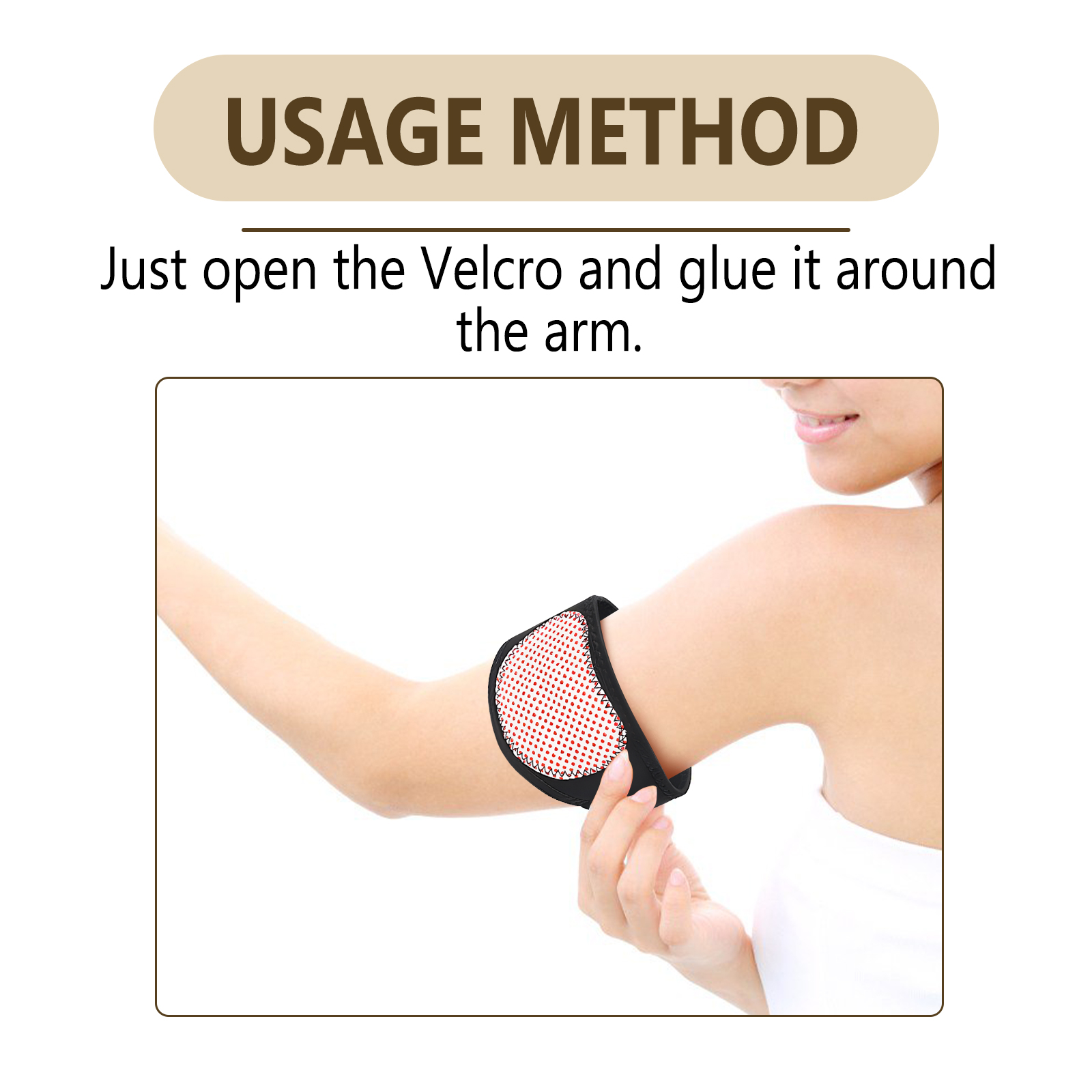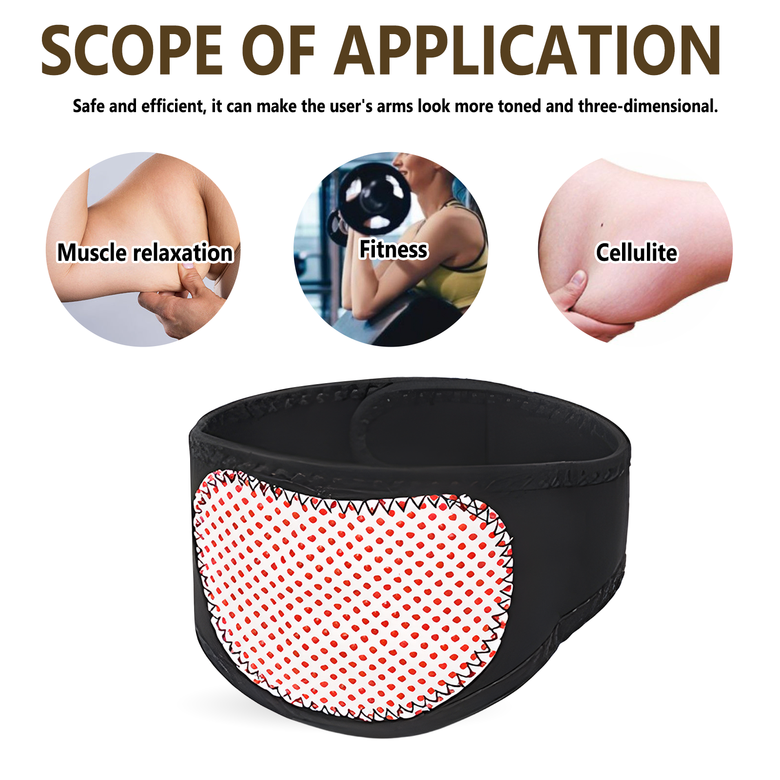 我们的离子臂修剪器含有90%聚酯纤维、5%磁铁、5%魔术贴。它可以有效燃烧脂肪细胞,改善血液流动,促进血液循环,它的使用方法很简单:打开尼龙搭扣,把它粘在手臂上就行了。可以有效减少双手的油腻感,每天只需几分钟,就能让你的双手丰满紧致。