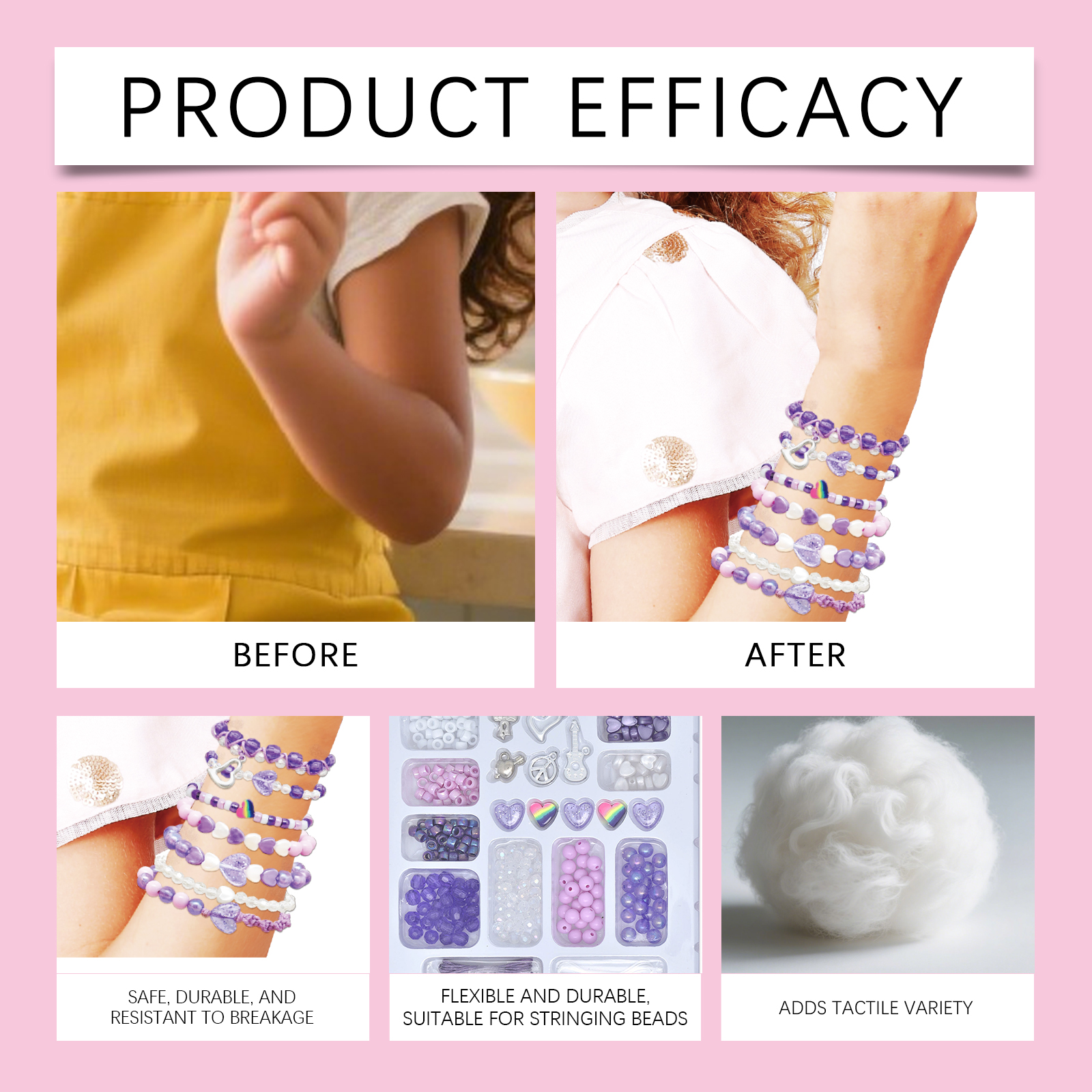 我们的梦幻主题儿童DIY手链礼盒 ,由PS、PVC精心调配而成。专为激发儿童创意设计与组合能力,锻炼手眼协调与精细动作设计。使用方法极为便捷:1.将绳子、串珠和串饰混合搭配,制作独一无二的首饰!2.适用于6岁以上儿童,玩具内含小球,不适合3岁以下儿童。需在成人直接监督下使用。并且它可以培养色彩搭配与审美意识,通过游戏学习基础数学概念。