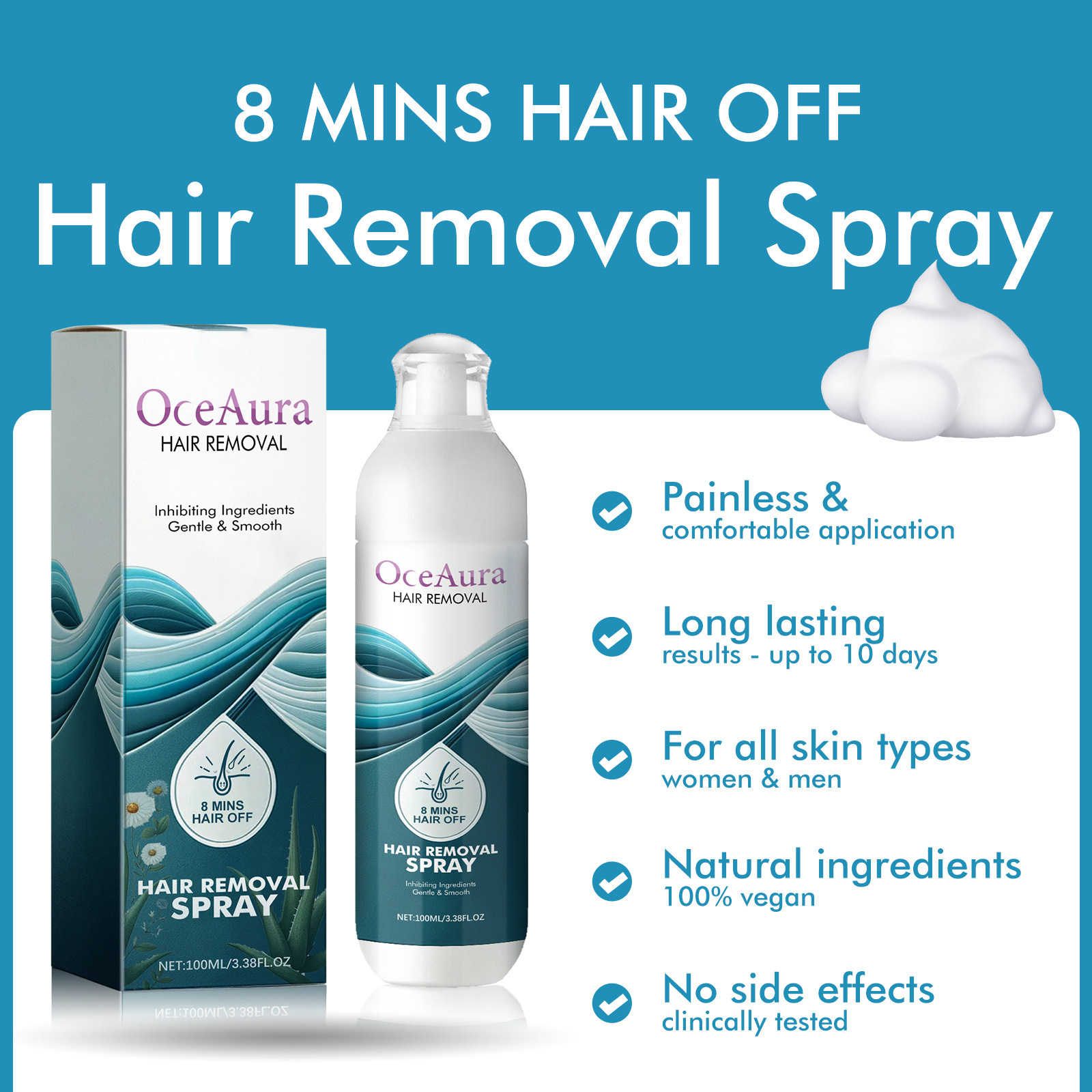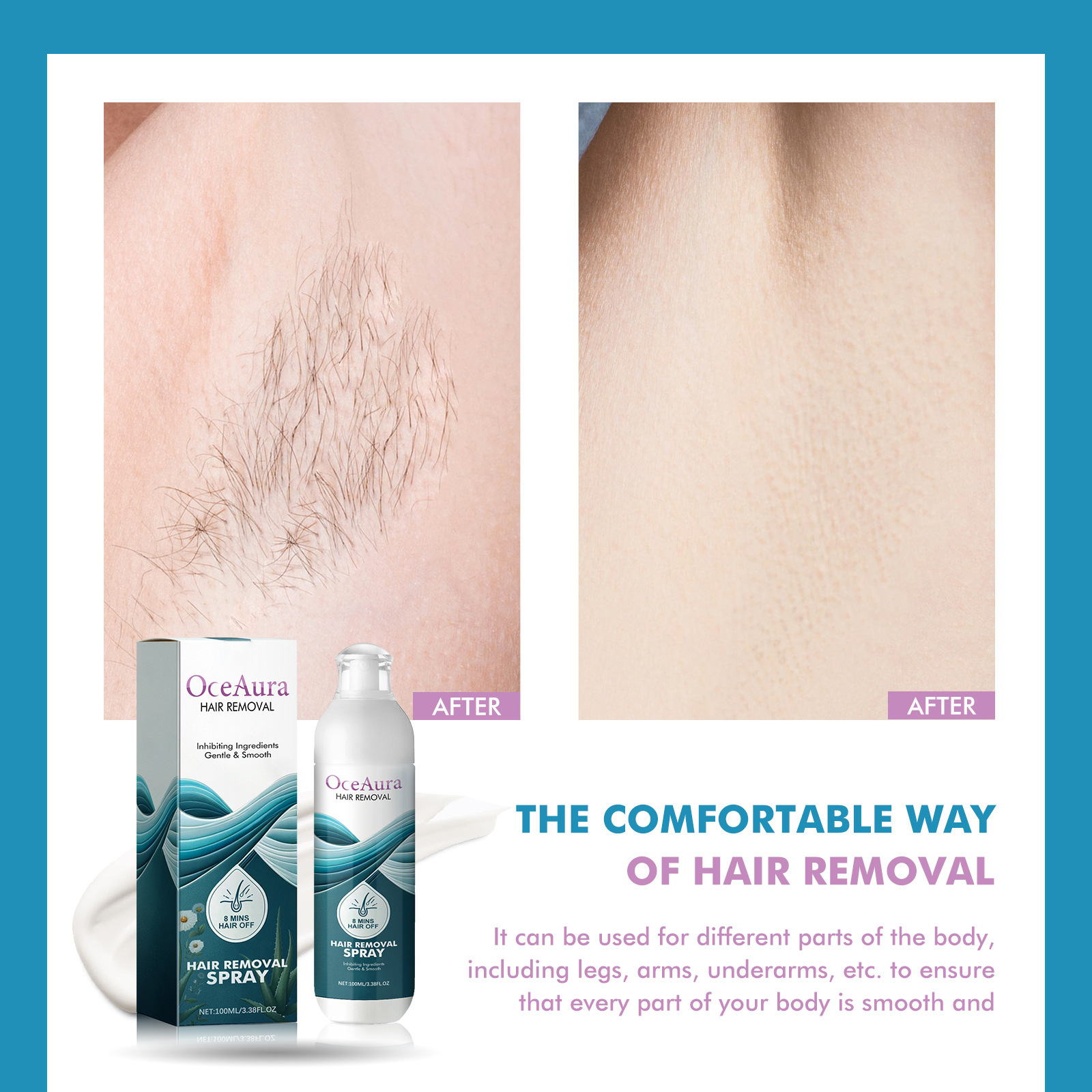 OCEAURA Hair Removal Spray, Underarm Leg Hair Hand Hair Mild Non-Irritating Skin Cleansing Removal Hair Removal