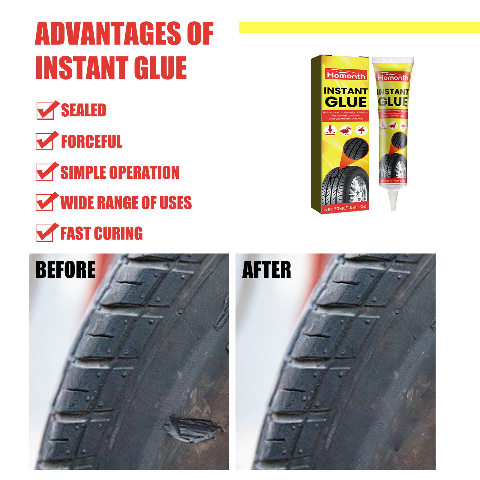 Homonth Instant Glue, Wheel Crack Repair Seal Adhesive Tire Repair Glue