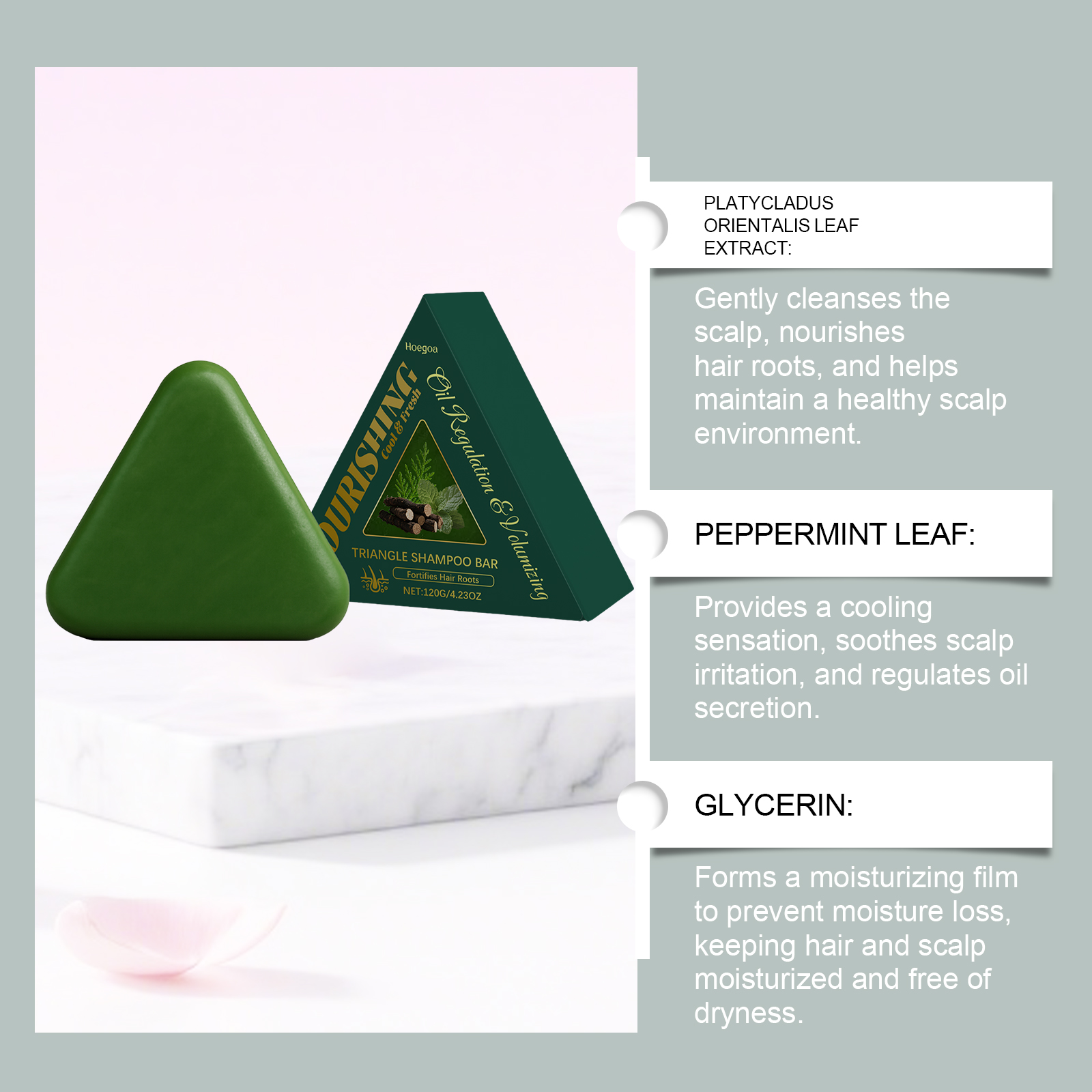 我们的草本滋养洗发皂,由棕榈油酸钠、硬脂酸精心调配而成。专为温和清洁头皮,滋养发根,并有助于维持健康的头皮环境设计。使用方法极为便捷:彻底打湿头发,将产品揉搓成泡沫,将泡沫涂抹于头皮和头发上,均匀按摩以清洁头皮2-3分钟,然后用清水冲洗干净。并且它可以提供清凉感,舒缓头皮刺激,并调节油脂分泌。